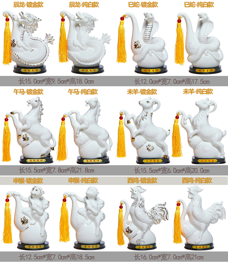 鍍金鼠十二生肖風水擺件陶瓷金鼠牛虎兔龍蛇馬羊猴雞狗豬家居裝飾工藝品