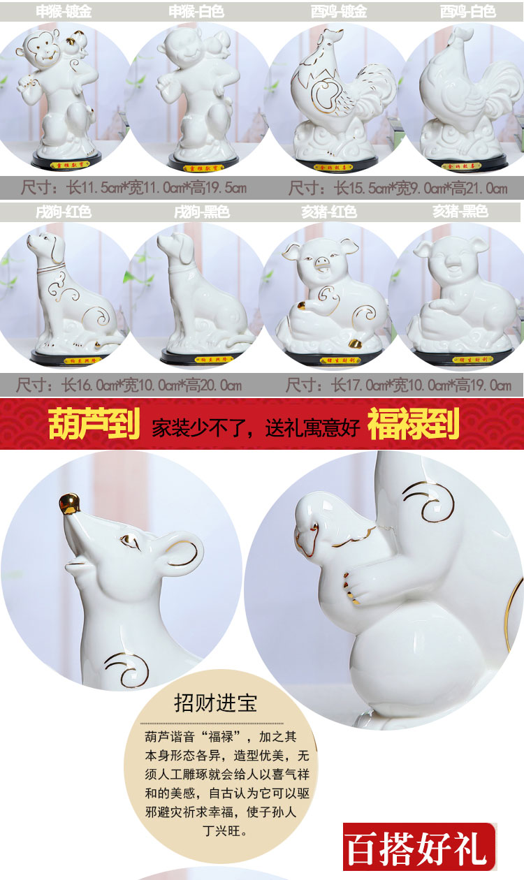 鍍金鼠十二12生肖陶瓷鼠牛虎兔龍蛇馬羊猴雞狗豬本命年風水擺件家居飾品