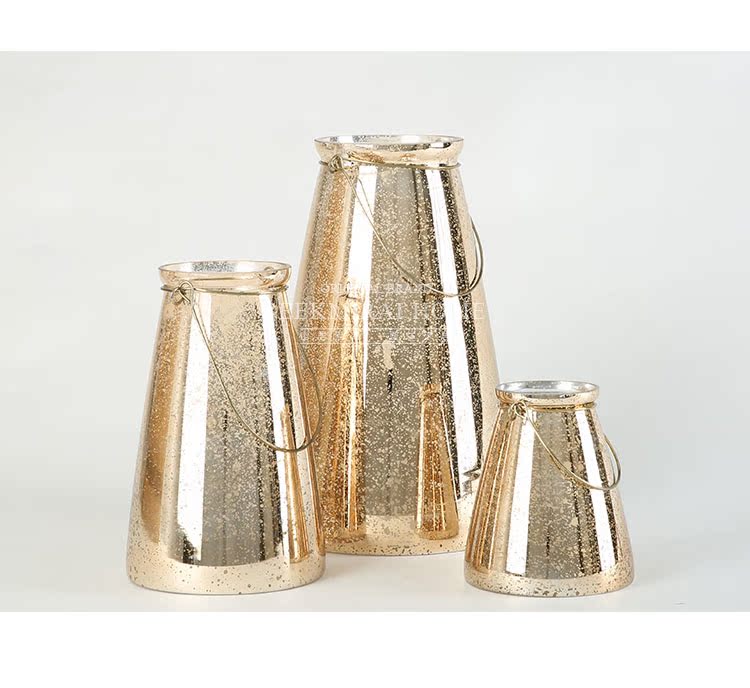 鍍金 中歐式家居飾品樣板房裝飾擺件電鍍金色蠟燭玻璃瓶創意手提風燈燭臺