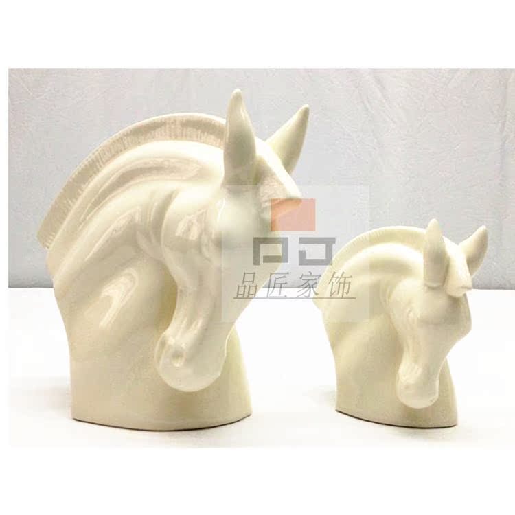 駝色右邊款現代中式軟裝家具辦公室桌面酒店會所酒柜電視柜茶幾馬頭雕塑擺件