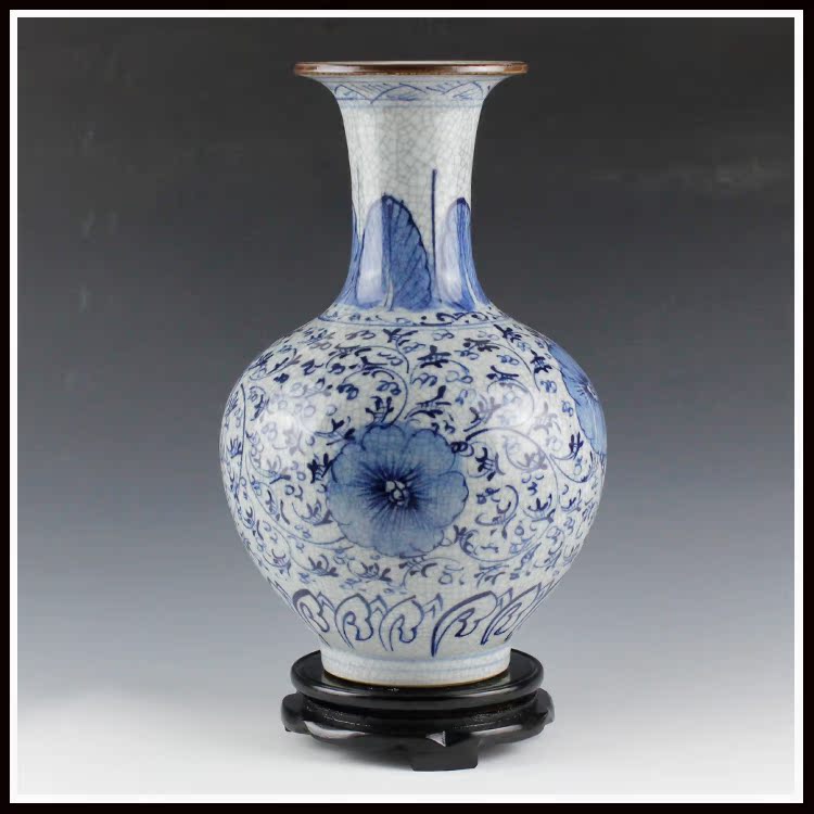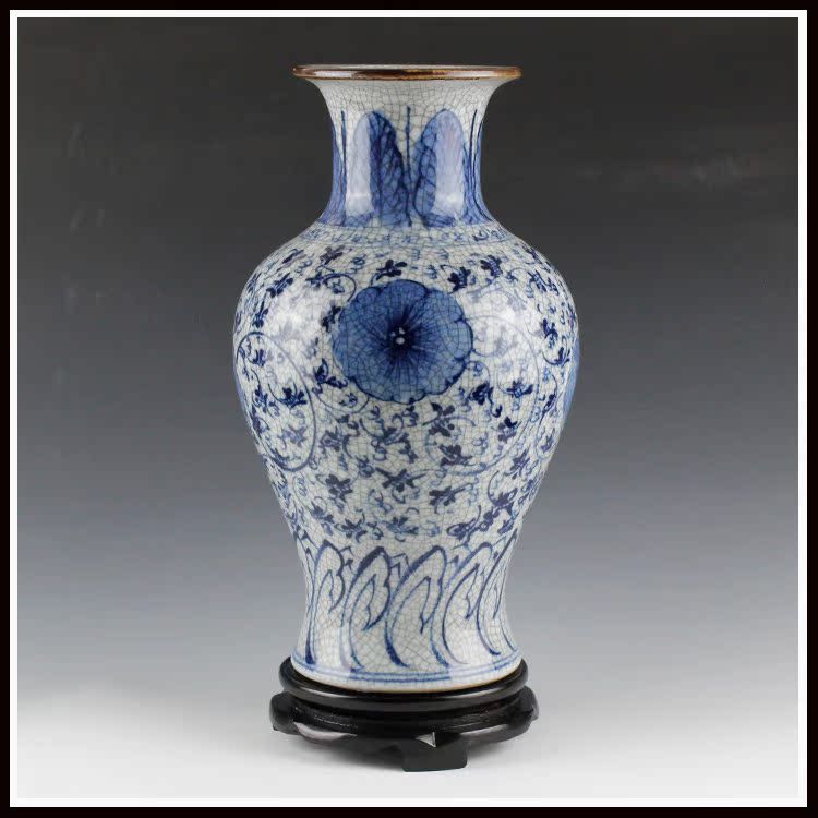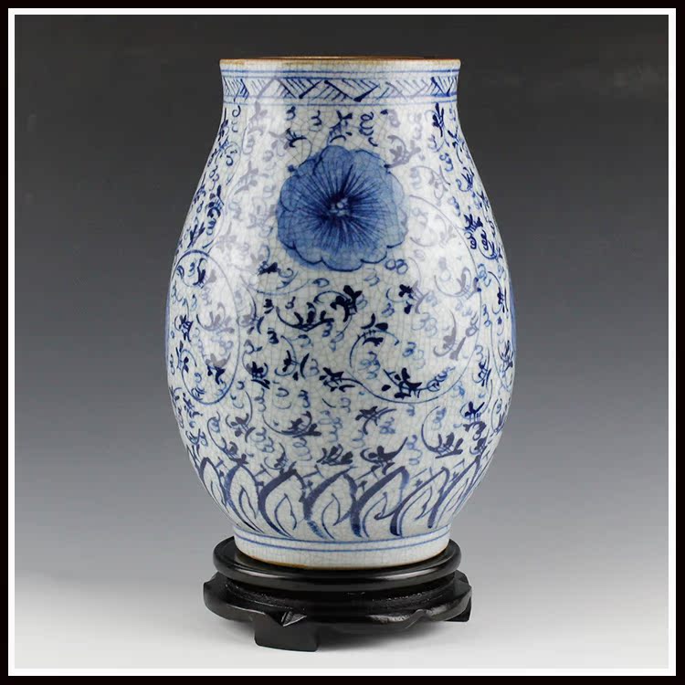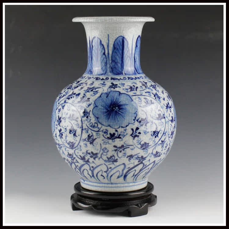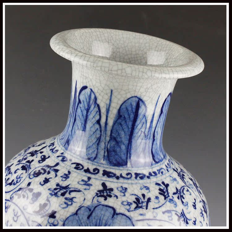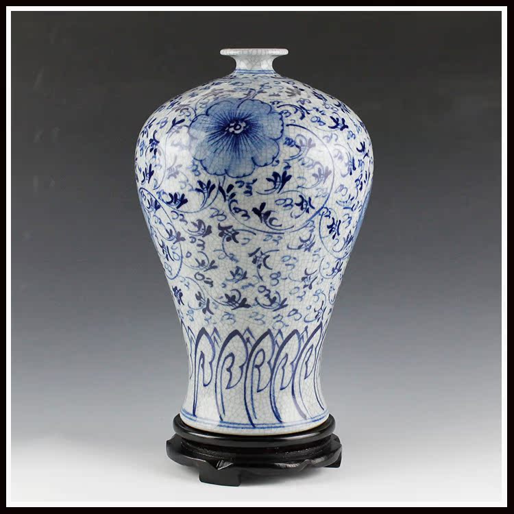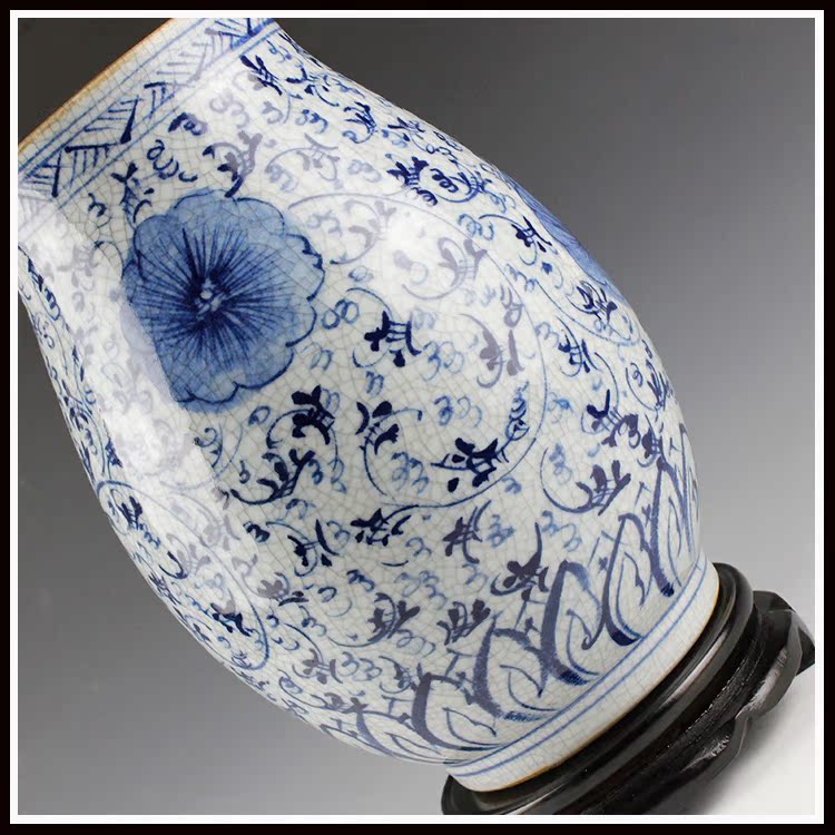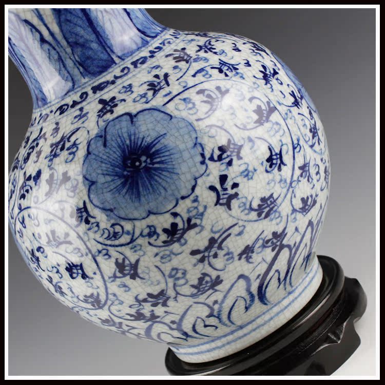 賞瓶景德鎮陶瓷器 手繪青花開片花瓶博古架 現代中式居家裝飾品擺件設