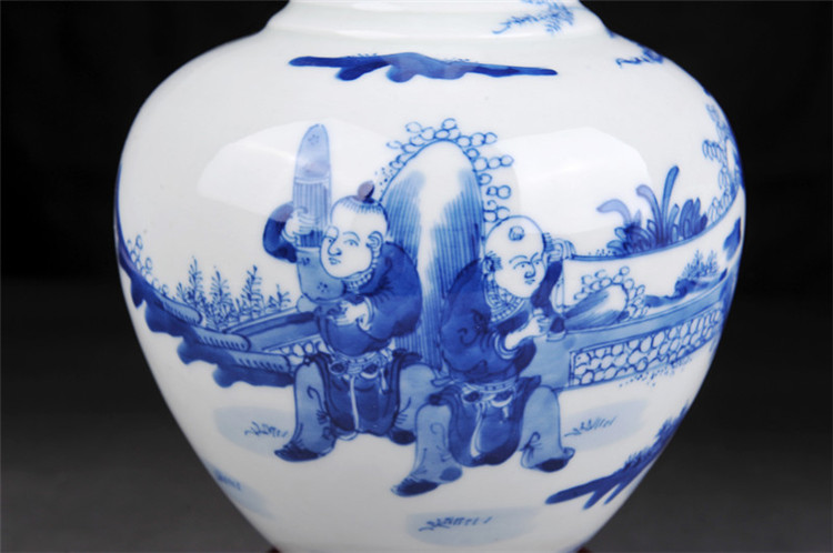 【品名】:手繪仿古青花嬰戲圖賞瓶