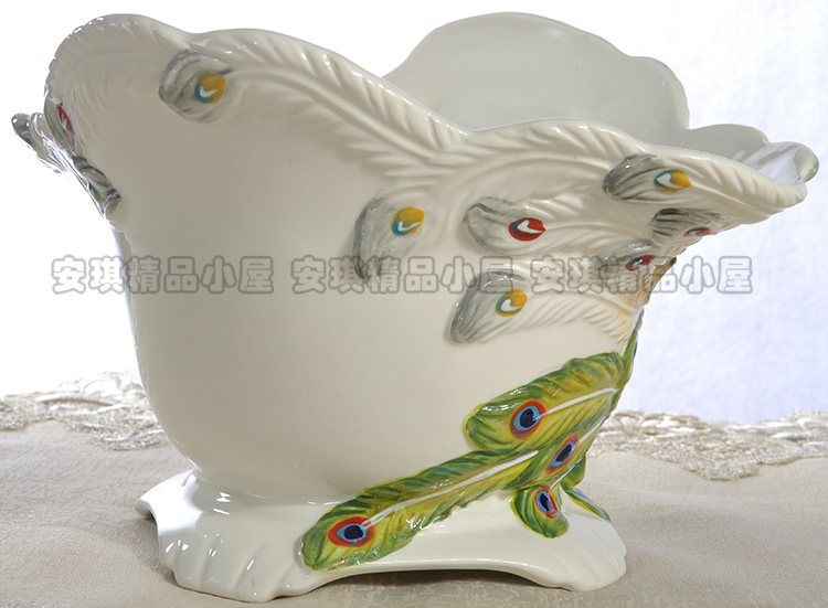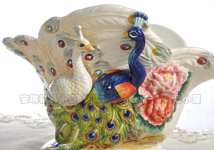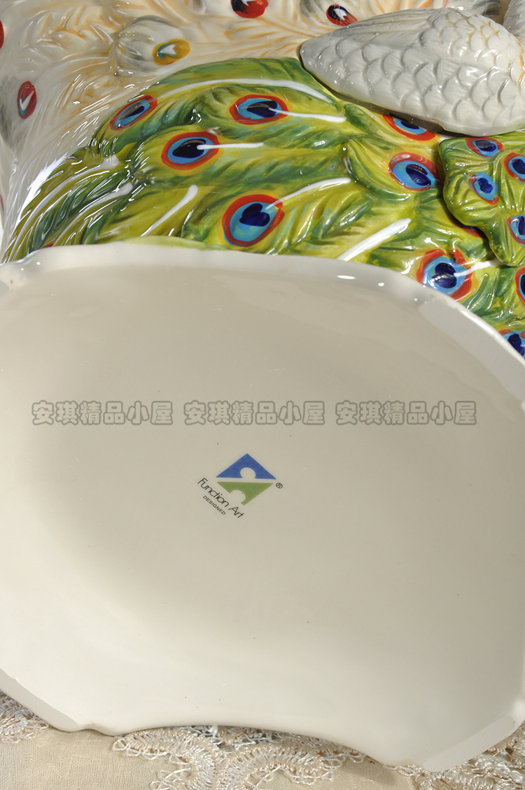 | 本公司大部分商品6一10天到貨。不接急單。急單的客戶請不要下單。感謝諒解與合作! 寓意:吉祥如意孔雀——加官進爵、富貴吉祥 孔雀被尊為“百鳥之王”,優雅霸氣、王者風范。被人們賦予平安、富貴、吉祥的寓意。在古代,孔雀羽毛是清皇帝的愛物,經常被插在花瓶當裝飾,更是常用來制作官員官帽的頂戴花翎。時至今日孔雀仍被尊崇,更被視為加官進爵、富貴吉祥的象征。 【規格】:29.2長*24.8寬*17.8高CM 【材質】:陶瓷 批發:4個一整箱 【介紹】:釉下彩繪陶瓷雕刻烤制而成。做工非常精致,孔雀栩栩如生非常漂亮,底部有LOGO標,有原裝禮盒,送給結婚,新居非常適合。