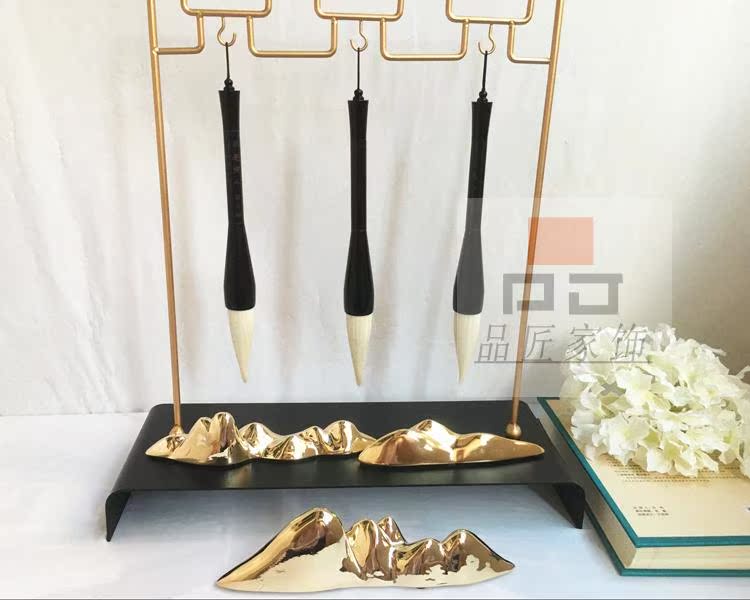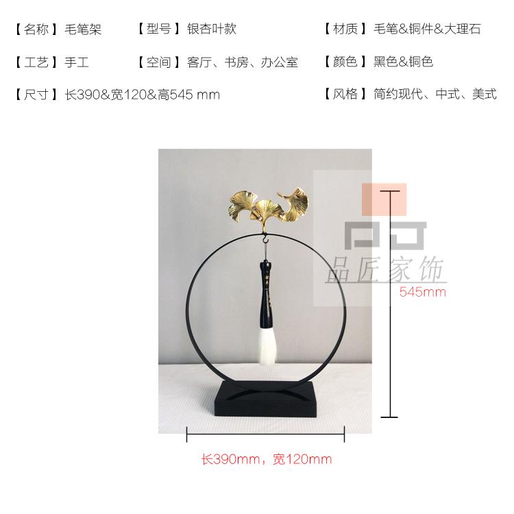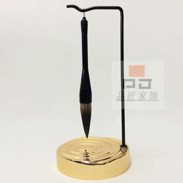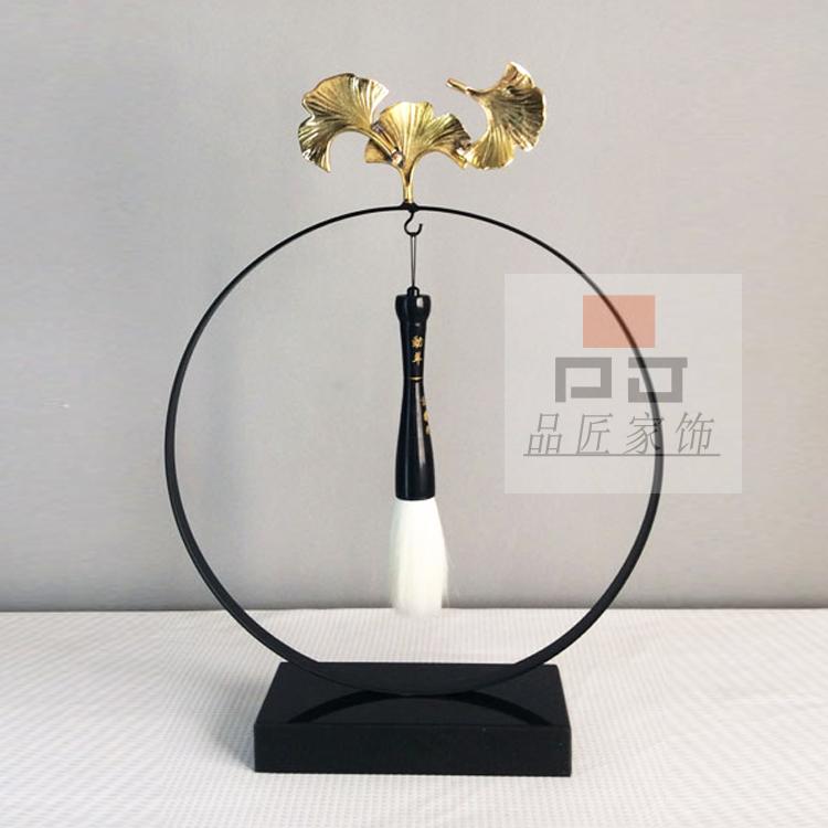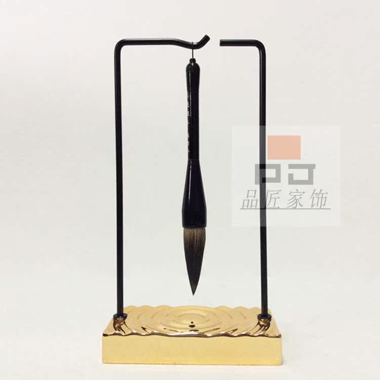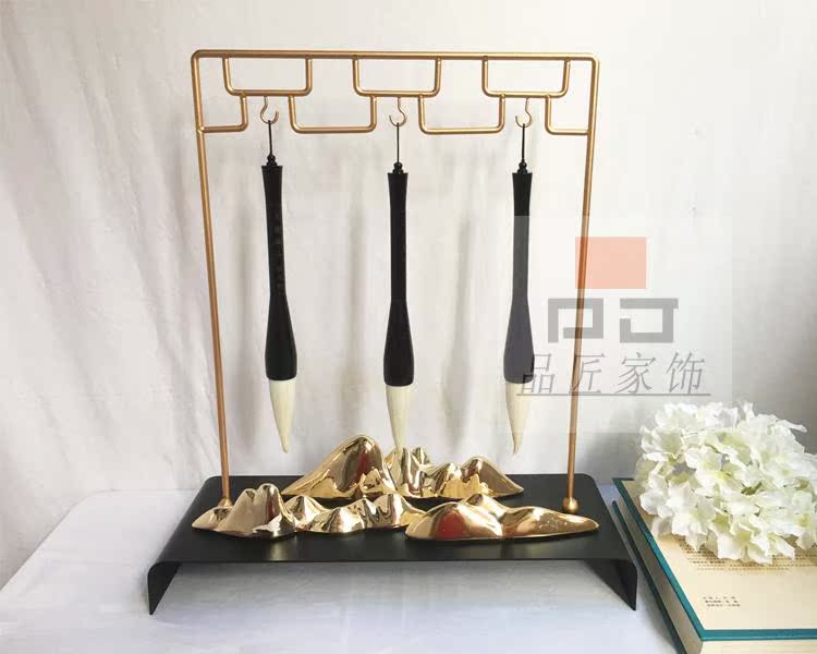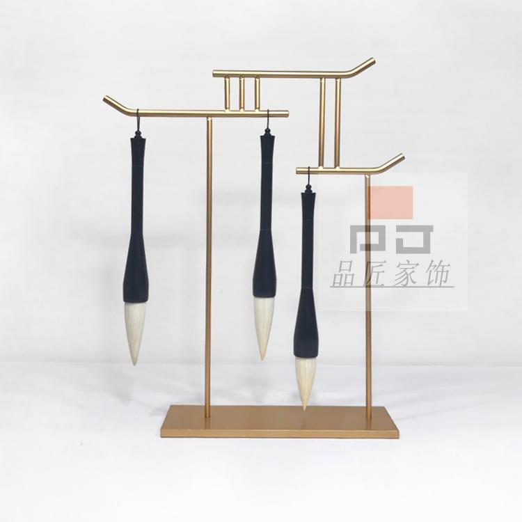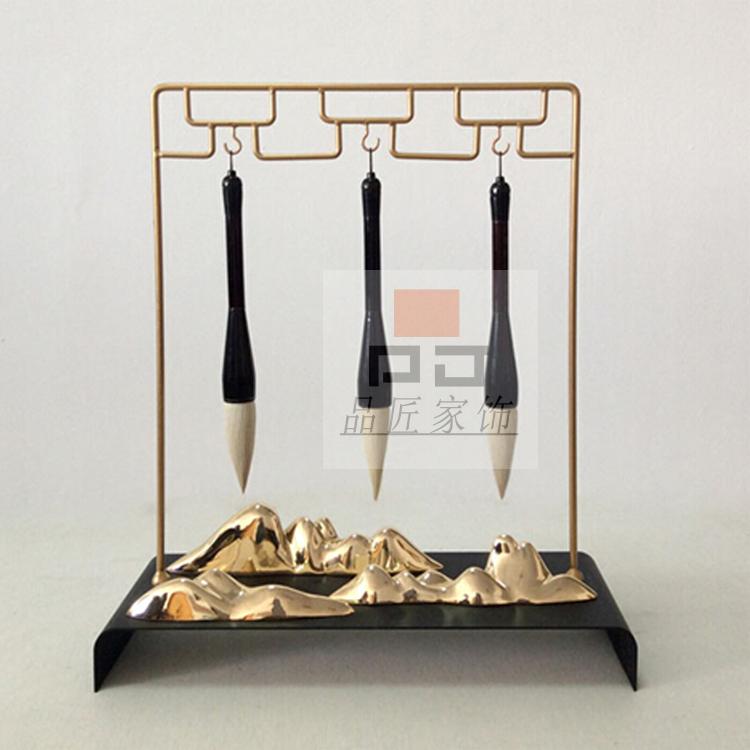 銅色新中式禪意軟裝實木家具樣板房辦公桌面飾品金色書房毛筆銅擺件
