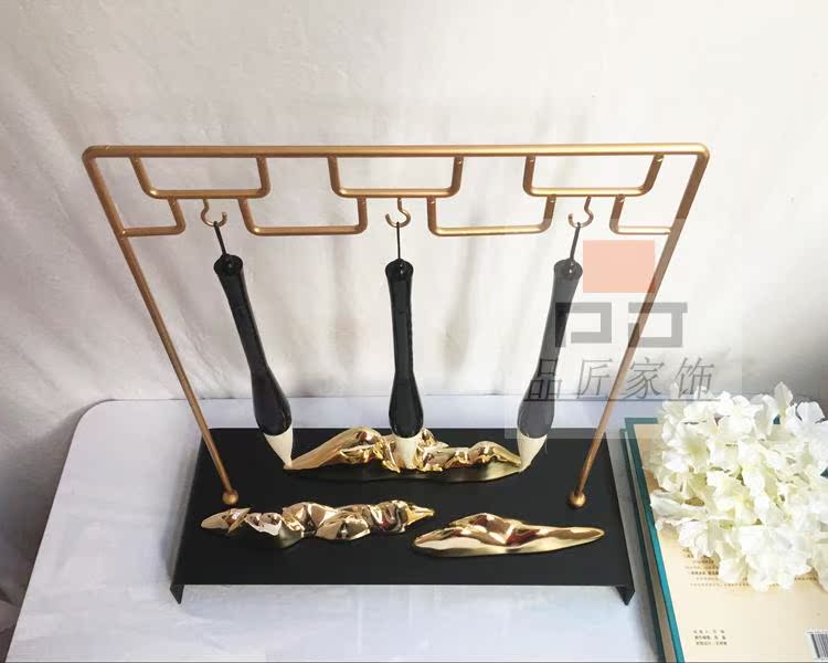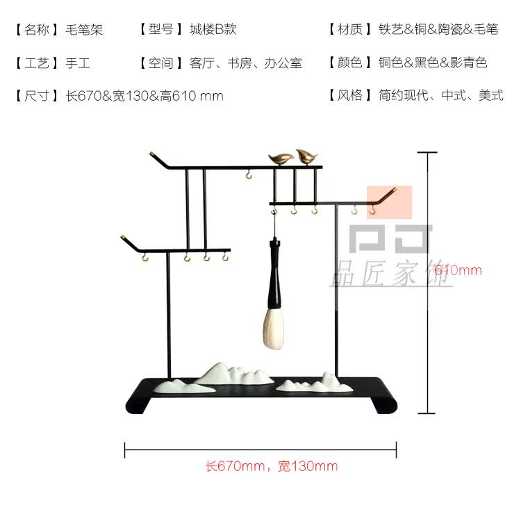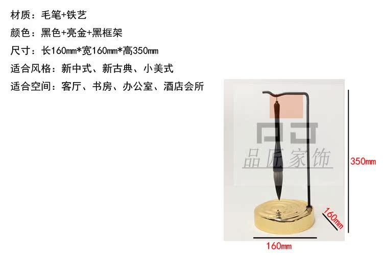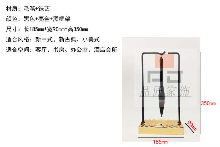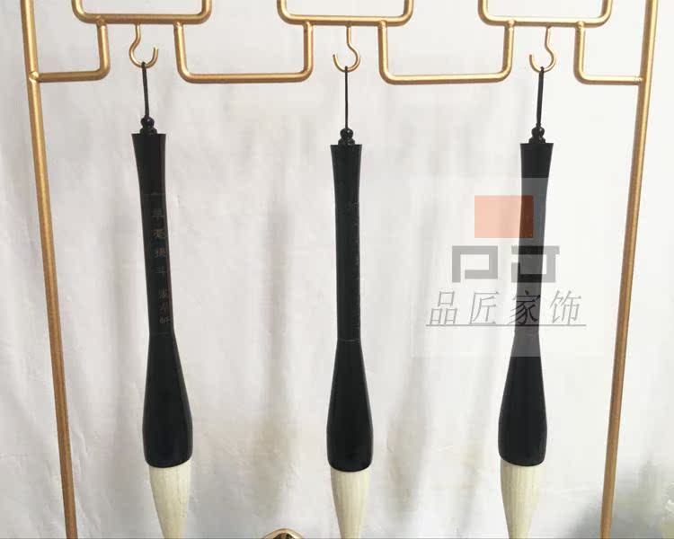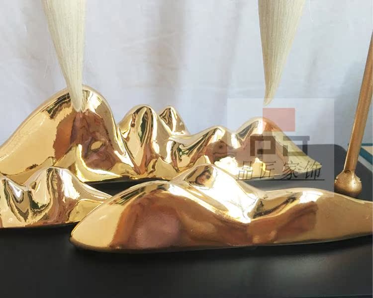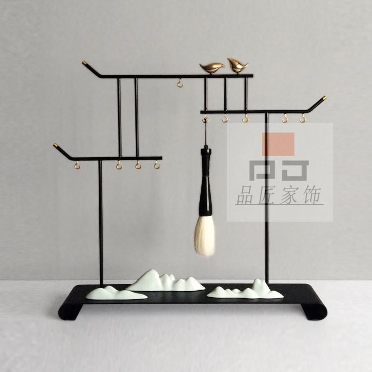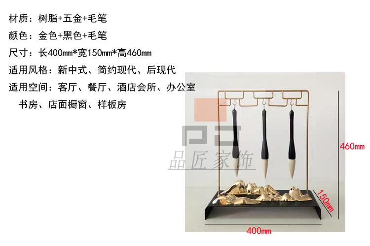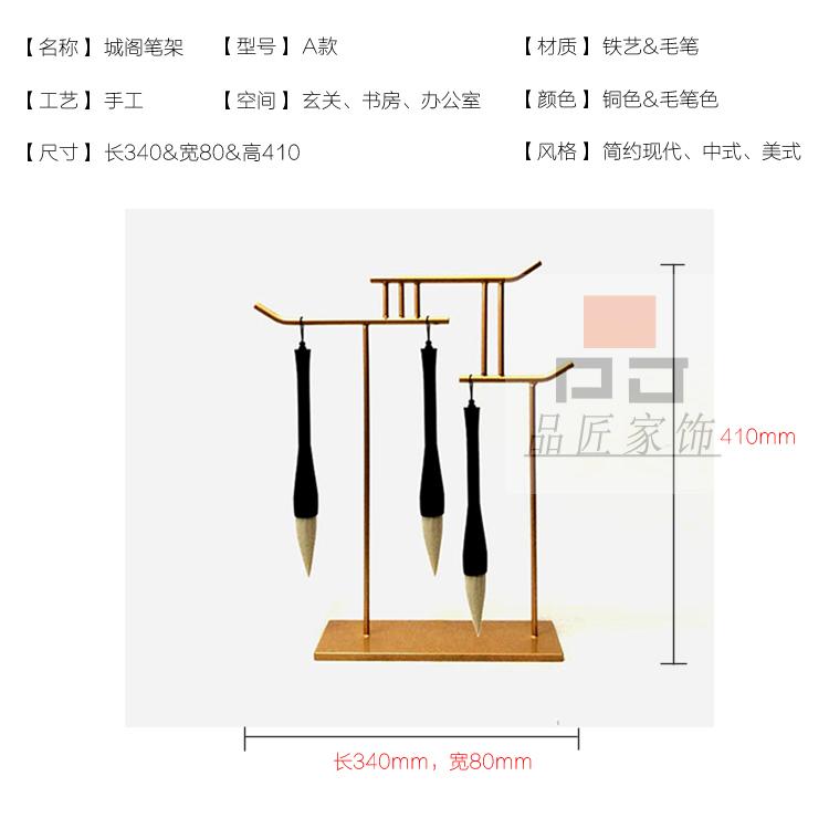 銅色新中式禪意軟裝實木家具樣板房辦公桌面飾品金色書房毛筆銅擺件