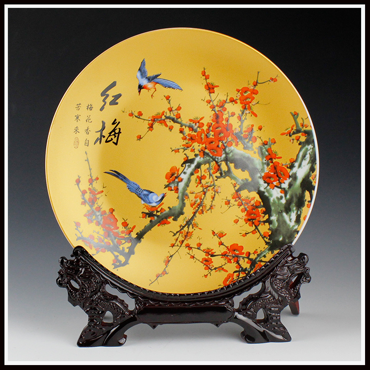 本公司大部分商品6一10天到貨。不接急單。急單的客戶請不要下單。感謝諒解與合作!![]() 【品名】:陶瓷裝飾盤子 【產地】:中國·景德鎮 【材質】:陶瓷 【規格尺寸】:盤直徑26cm,加支架高約26.5cm,加龍頭底座高約29.5cm ![]() ![]() ![]() ![]() ![]() ![]() ![]() 【關于瑕疵】: ◎陶瓷均為手工制品,泥質火燒。無法到達機械制品那般的美,因此不排除會有少許針眼幾瑕疵存在,這也是陶瓷手工品的特點! 【關于色差】: ◎所有商品圖片及細節圖均為實物拍攝,但不排除因顯示器顯示效果的不同導致顏色差異的現象出現,少許的色差難以避免。若對顏色很苛刻的人請慎重考慮! 【關于】: 默認視地區而定,