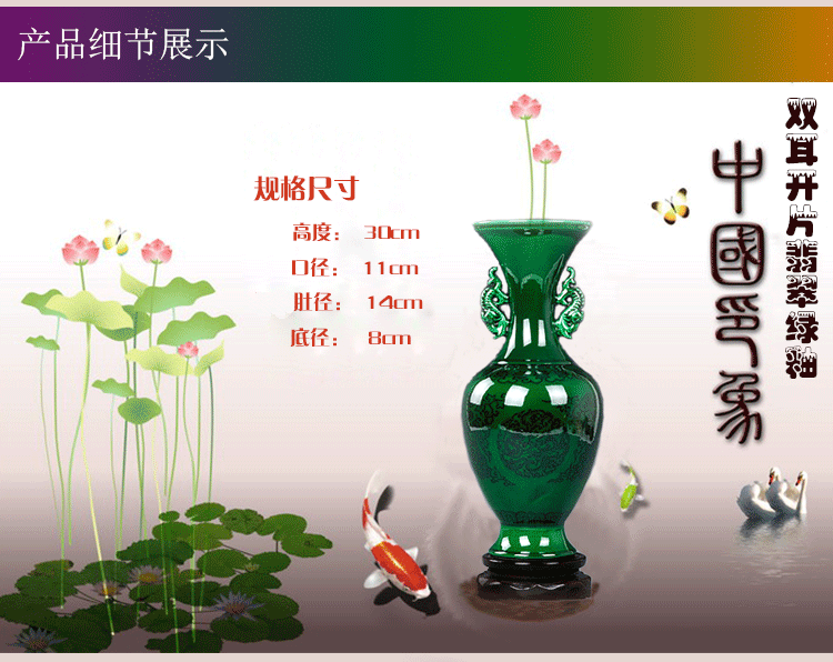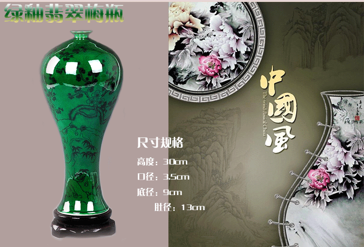 翡翠綠瓶,使用優質高嶺土,1300多度高溫燒制而成。造型優美,畫面精致,古典風格,可以擺設博古架、案頭、電視柜、裝飾格等地方,是家居裝飾陶瓷良品!