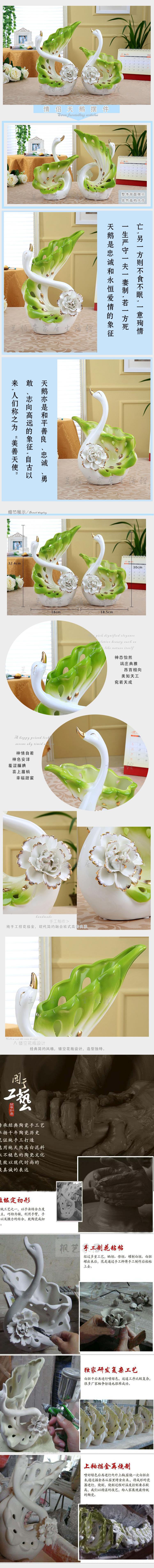 綠色一對歐式家居飾品結婚喬遷禮物創意工藝陶瓷天鵝電視柜飾品琺瑯瓷擺件