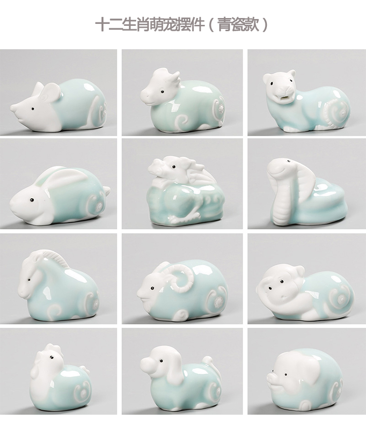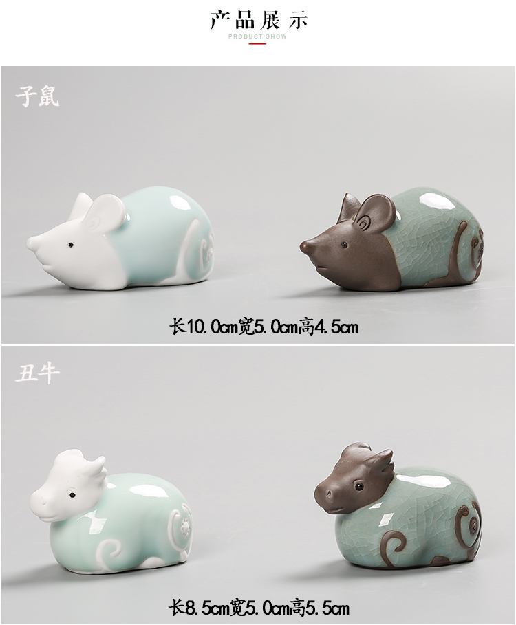 鼠(哥窯)十二12生肖陶瓷鼠牛虎兔龍蛇馬羊猴雞狗豬工藝禮品青瓷茶寵小擺件