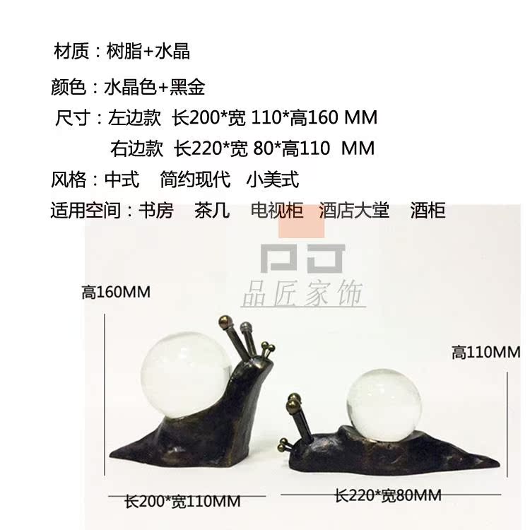 黑金左邊款中式古典現代軟裝賣場樣板高檔家庭家具電視柜動物蝸牛雕塑小擺件