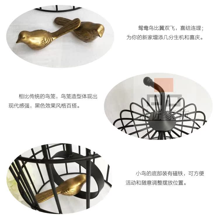 黑色右邊款現代中式軟裝家具家庭辦公室酒店會所電視柜鳥籠鐵藝雕塑擺件飾品