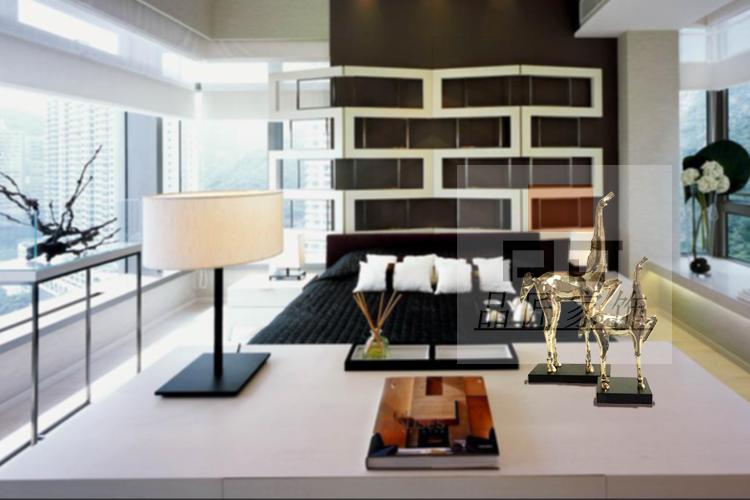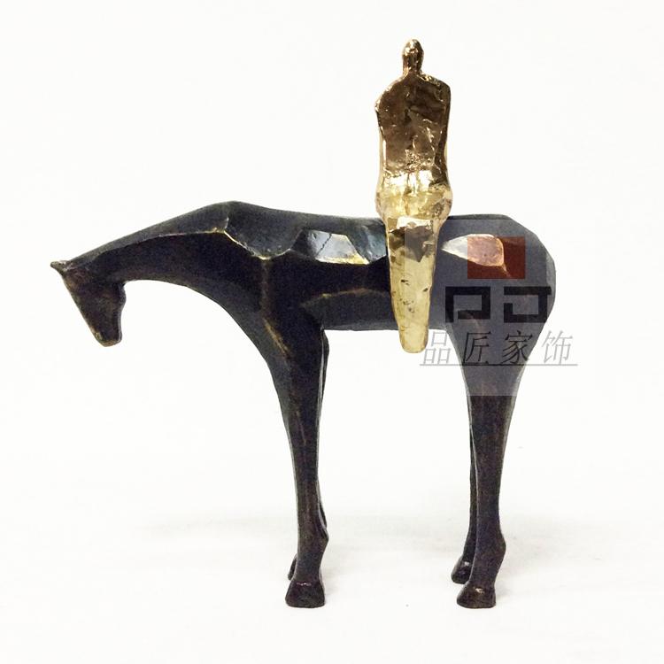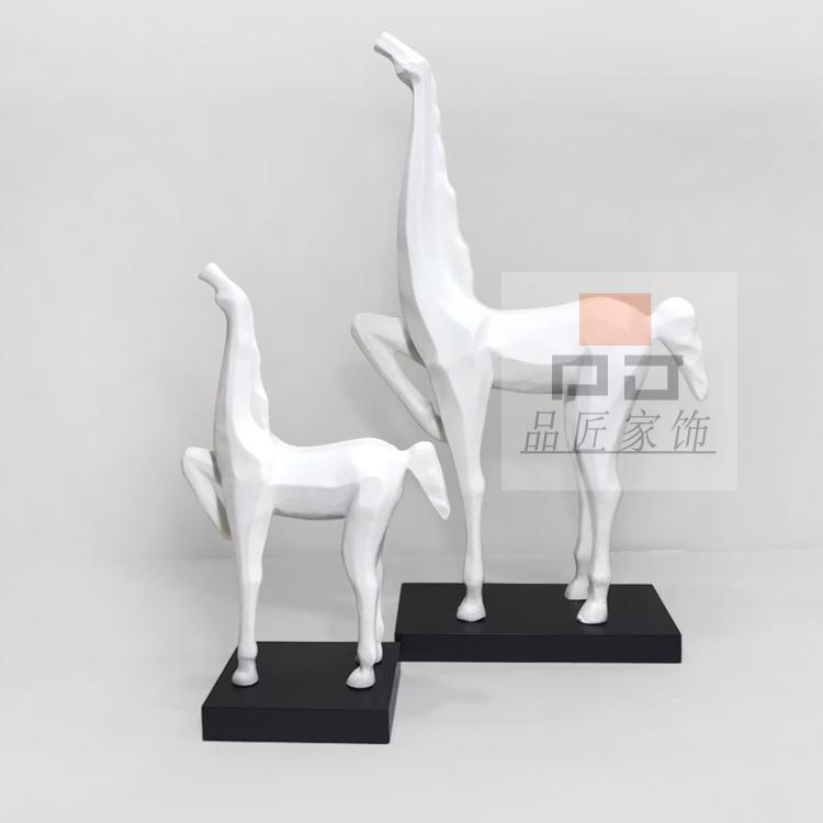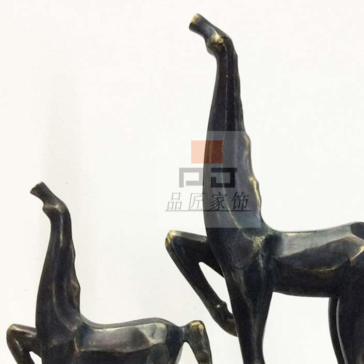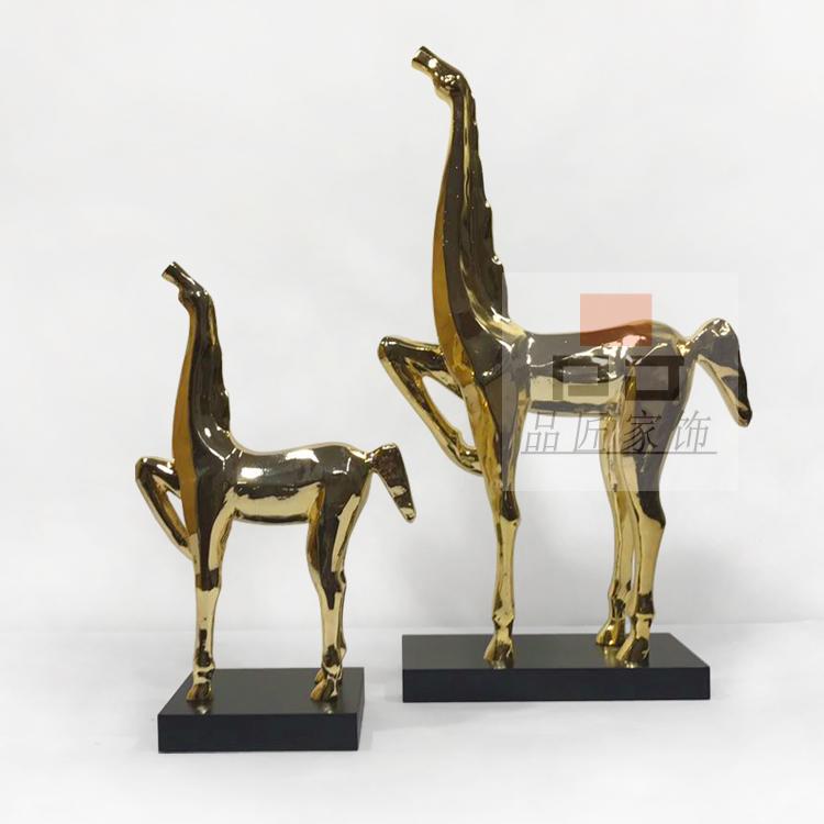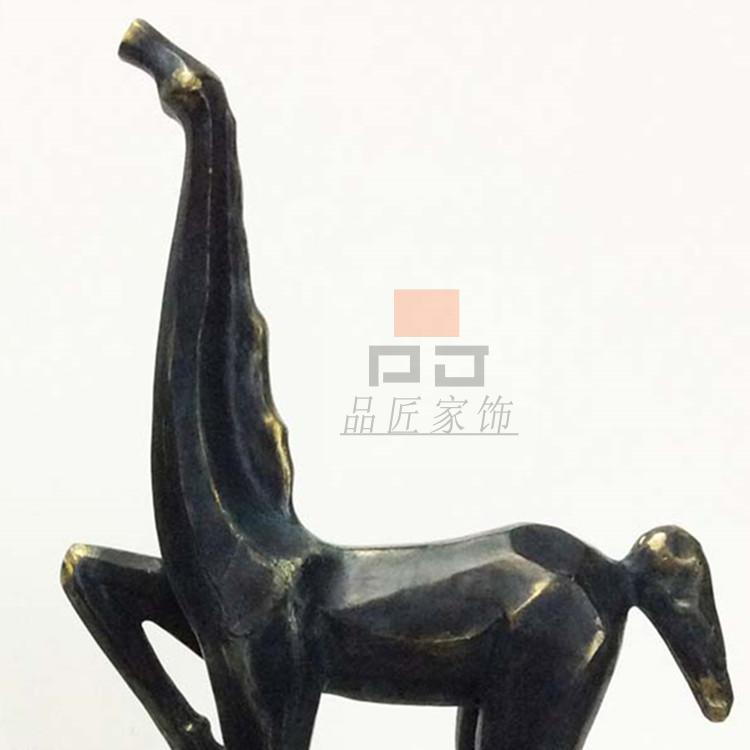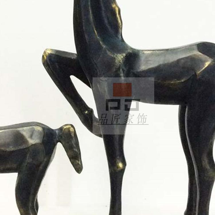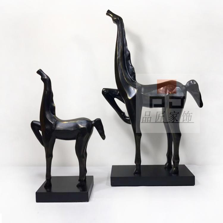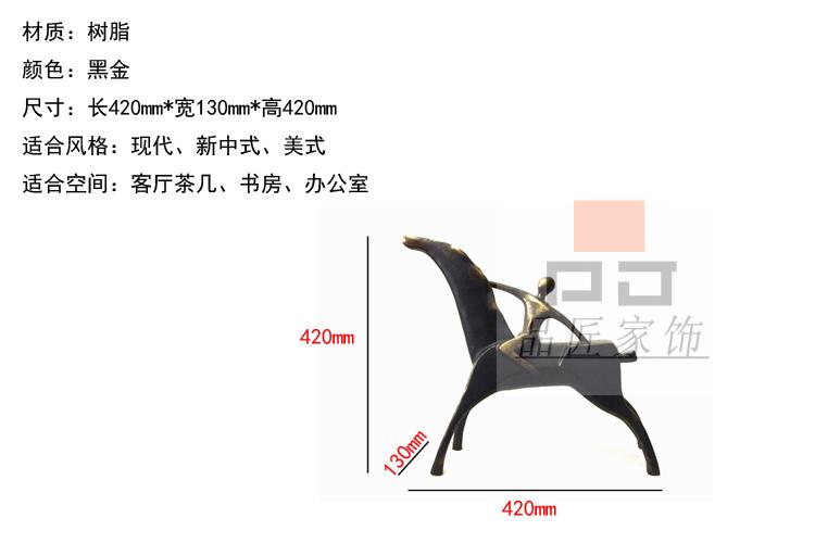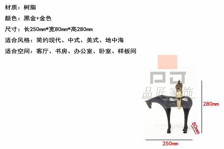 黑色小號現代新中式辦公室酒店玄關家具桌面茶幾飾品黑白金色馬雕塑小擺件