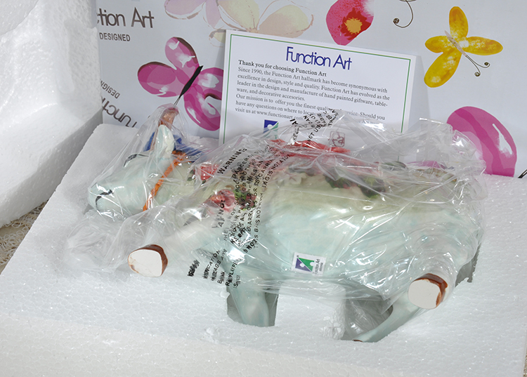 【介紹】:釉下彩繪陶瓷雕刻烤制而成。純手工釉下彩,浮雕加立體手工花,風格獨特,適用家居很溫馨的喲!底部有LOGO標,原品牌彩盒包裝,送禮很適合。