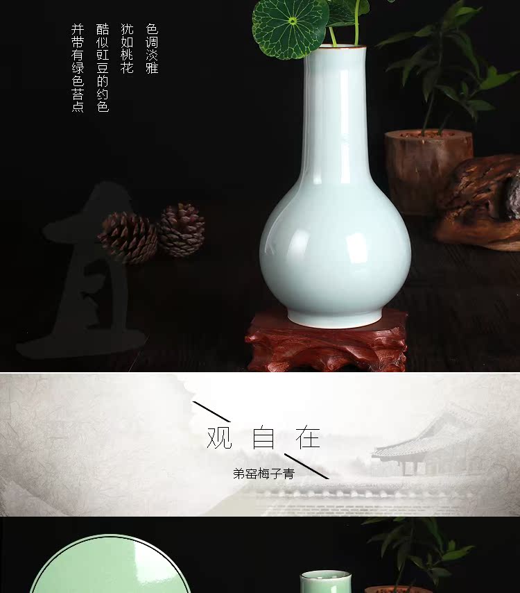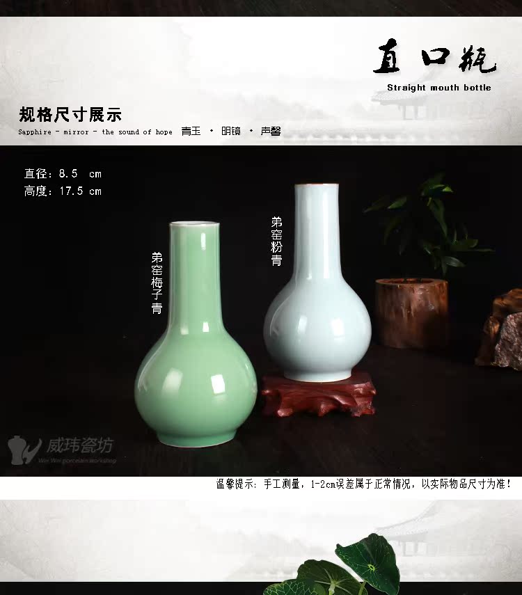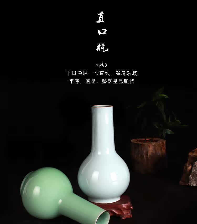 第窯粉青龍泉青瓷直口瓶迷你純手工臺面花插擺件簡約小號陶瓷威瑋青瓷