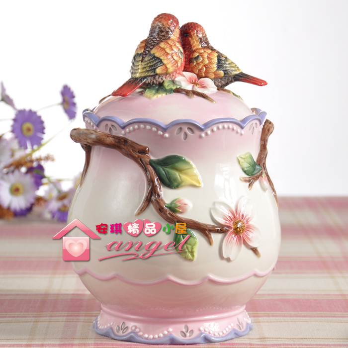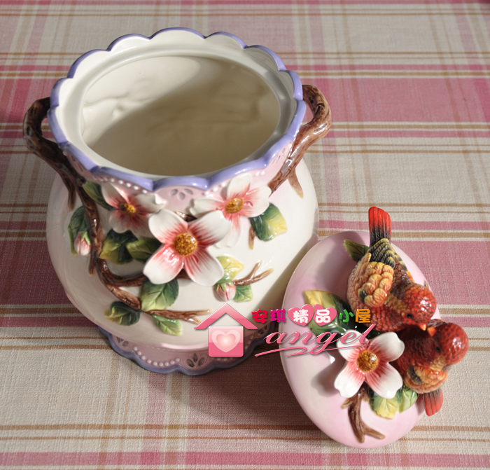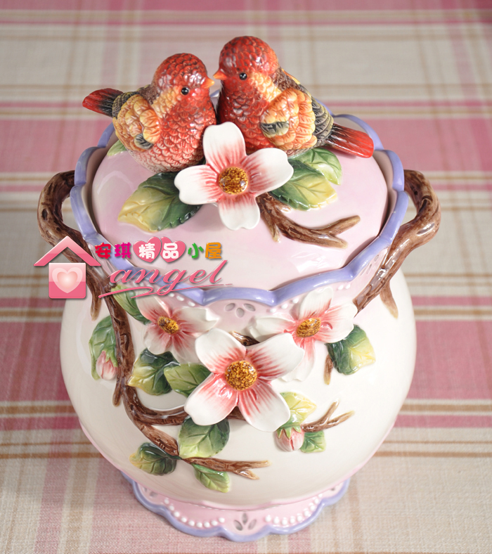 【介紹】:釉下彩繪陶瓷雕刻烤制而成。風格獨特,清晰自然,手工花及兩只逼真的紅鳥非常漂亮,非常適用現代時尚的家居,底部有品牌LOGO標,原裝禮盒,送結婚的最佳禮品.