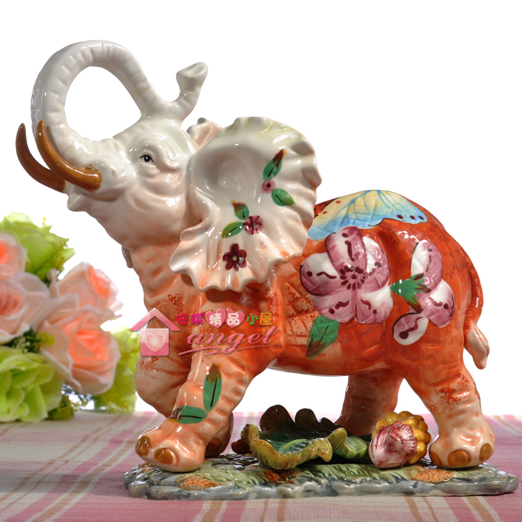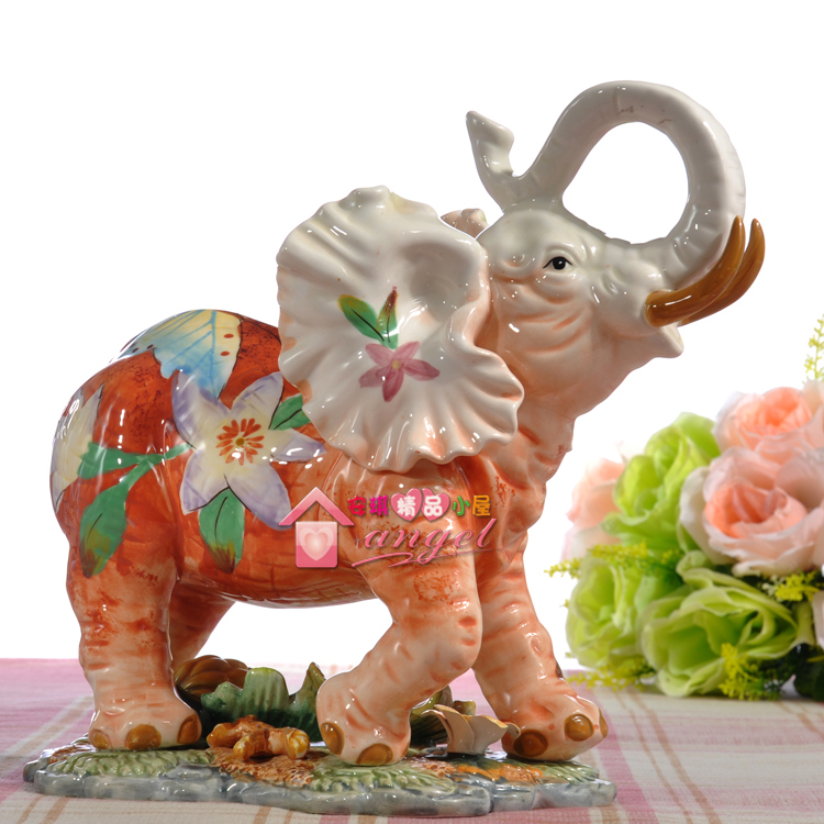 【品名】:招財象手繪蝴蝶與花中號
