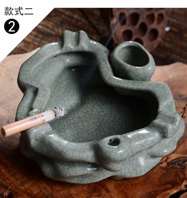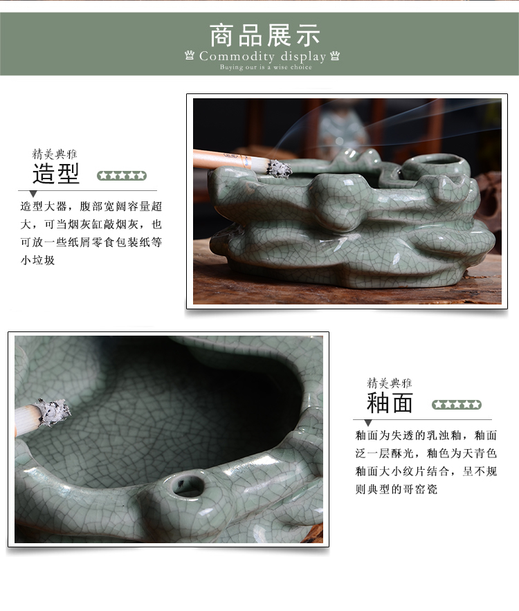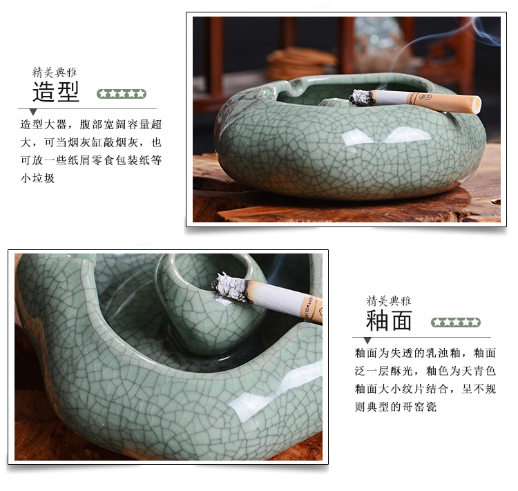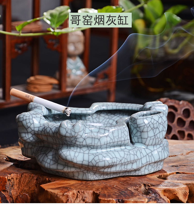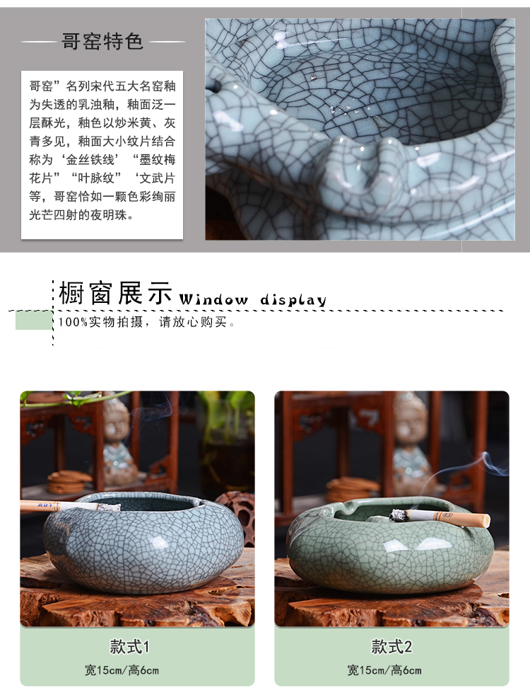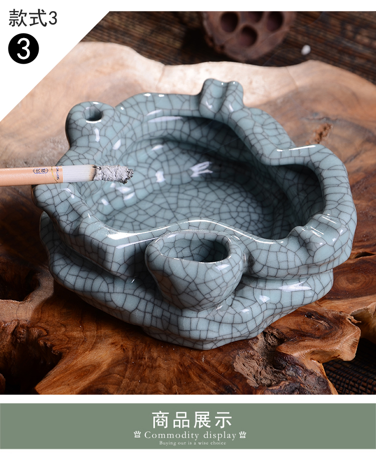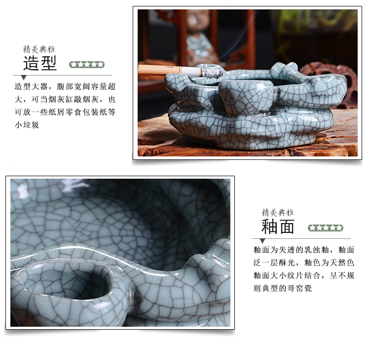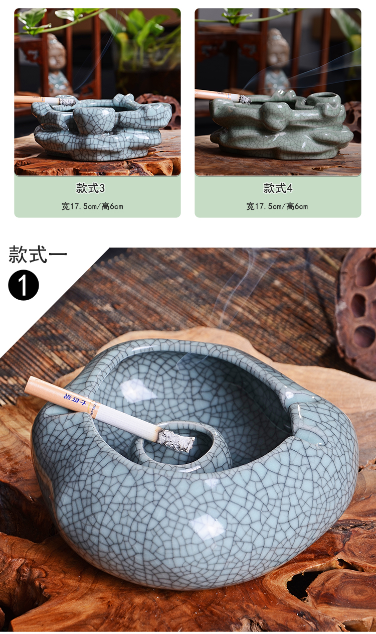 款式1煙灰缸哥窯汝窯中式做舊復古大號煙灰缸擺件客廳辦公室裝飾煙缸