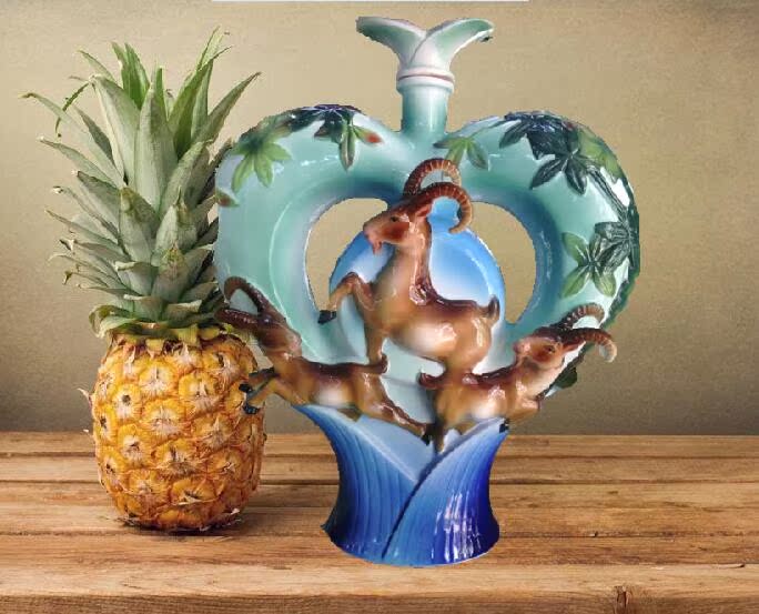 景德鎮藝術陶瓷酒瓶 三陽開泰5斤 山羊工藝瓷 家居裝飾收藏瓷