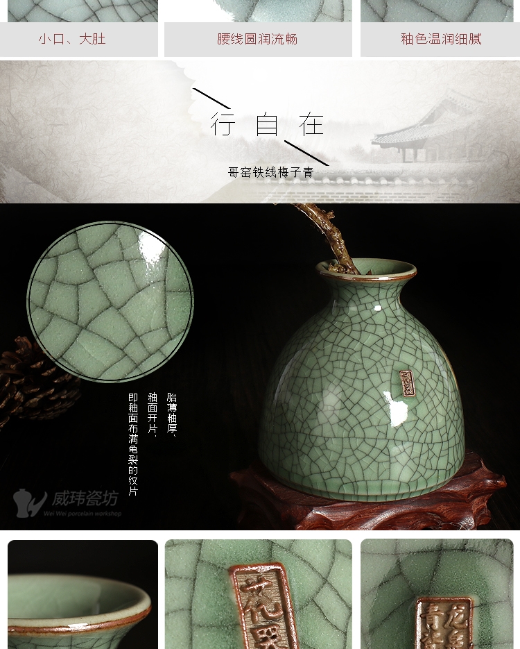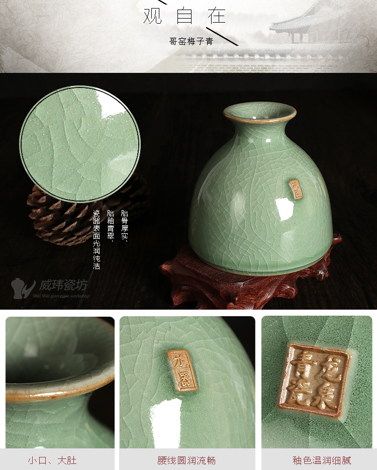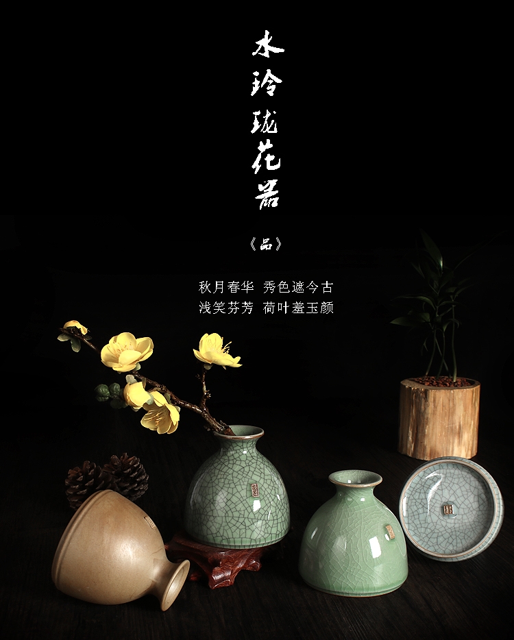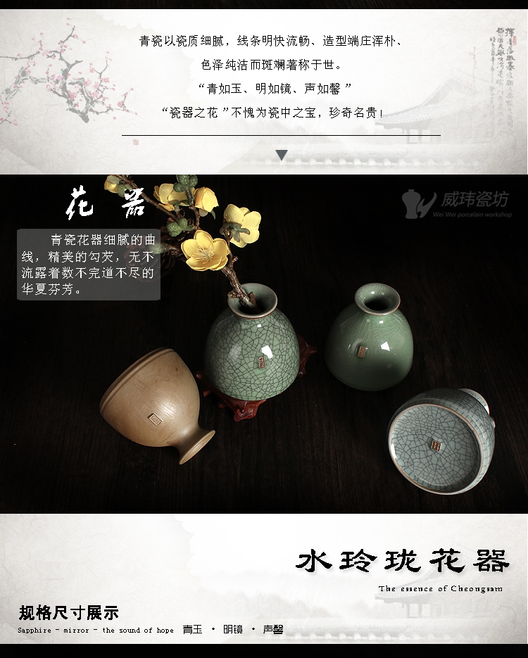 陶龍泉威瑋青瓷器水玲瓏花器仿古家居飾品玄關博古架擺件插花瓶花器