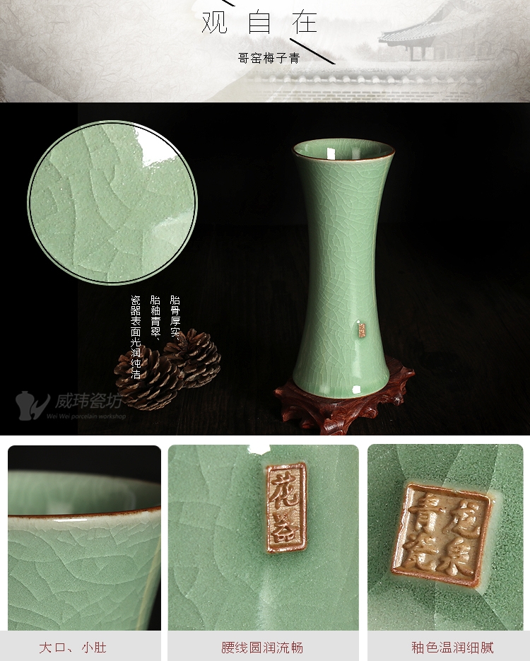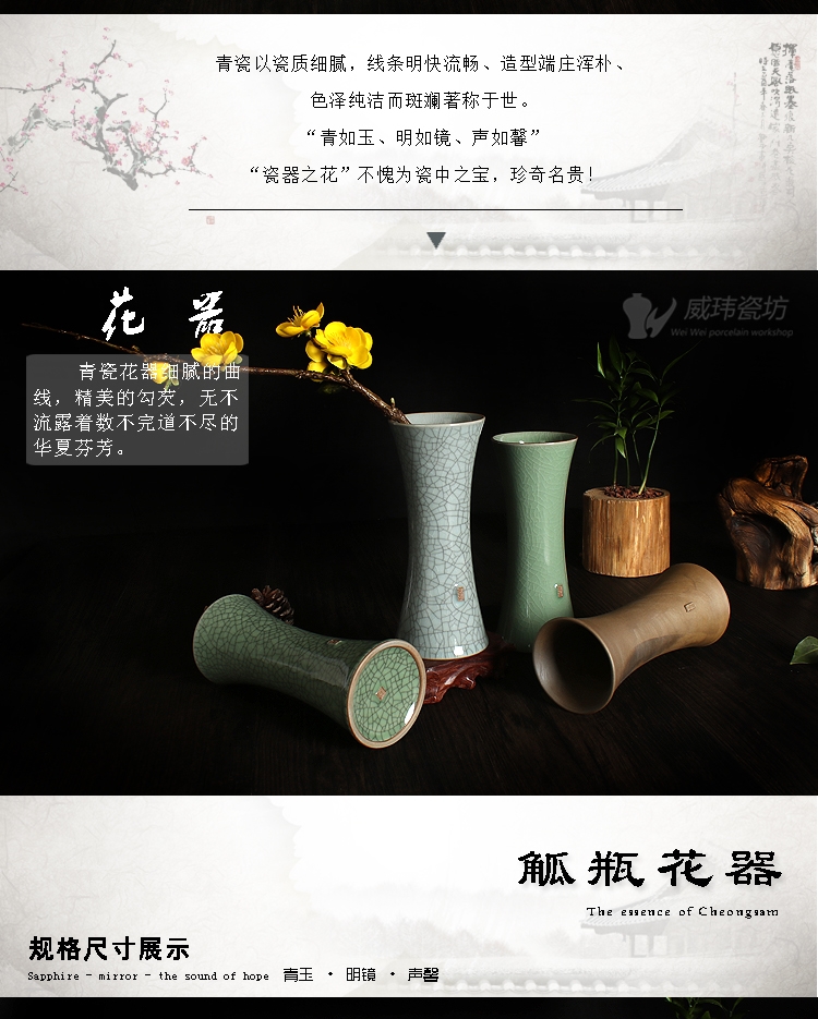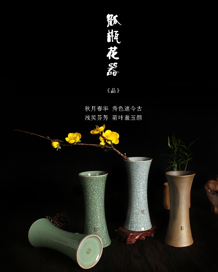 陶龍泉威瑋青瓷瓷器觚瓶花器仿古家居飾品玄關博古架擺件插花瓶花器
