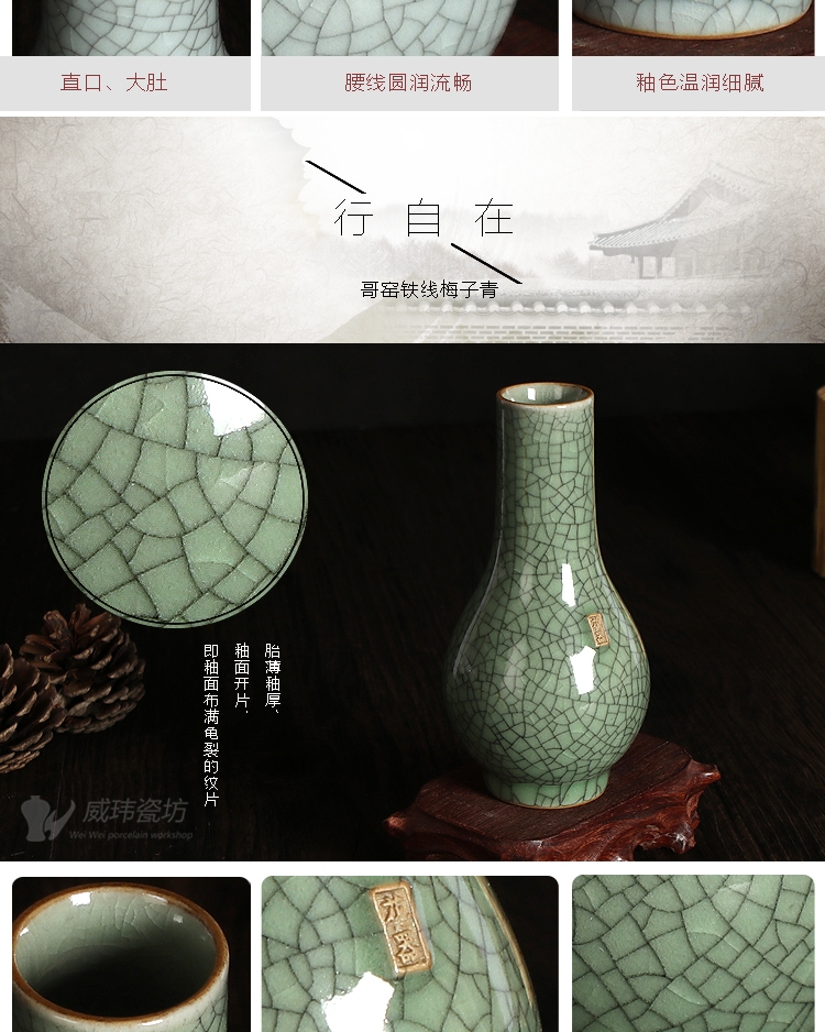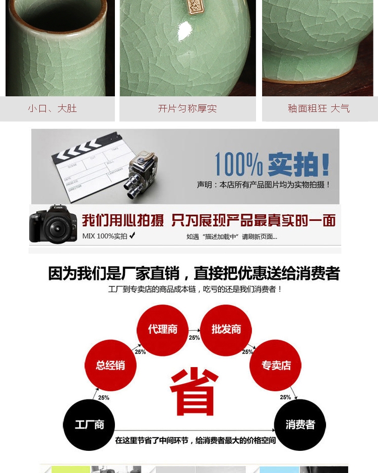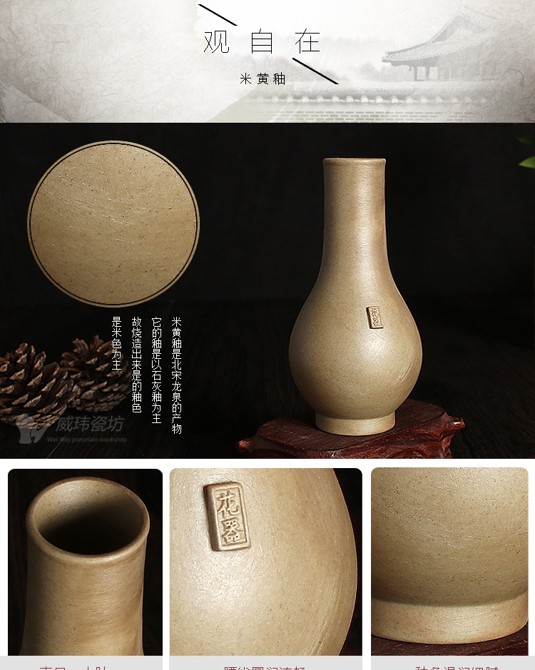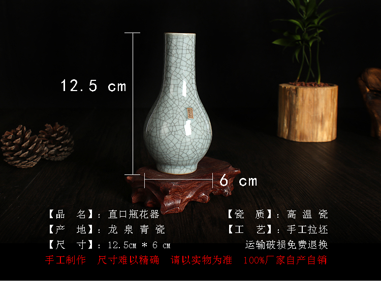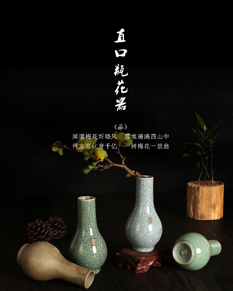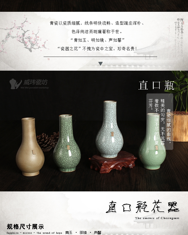 陶龍泉威瑋青瓷器直口瓶花器仿古家居飾品玄關博古架擺件插花瓶花器