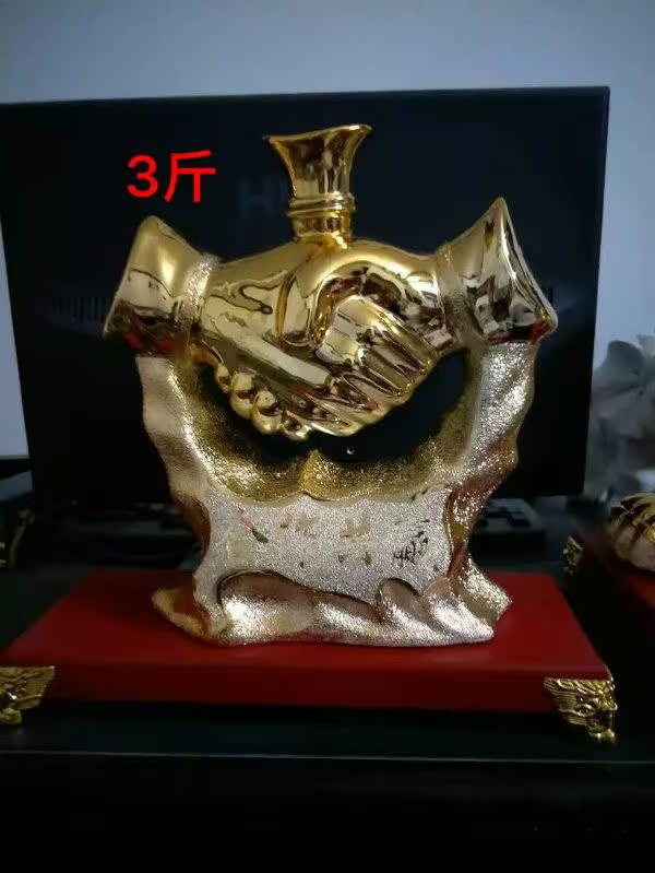 陶瓷藝術酒瓶3斤金色(握手合作共贏)工藝瓷瓶 禮品家居裝飾擺件