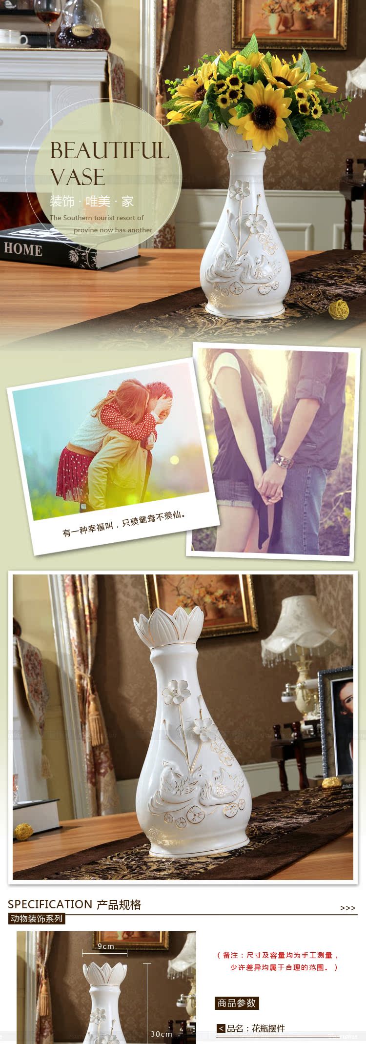 現代中式陶瓷花瓶鴛鴦戲水擺件桌面插花裝飾品水培瓷器創意家居