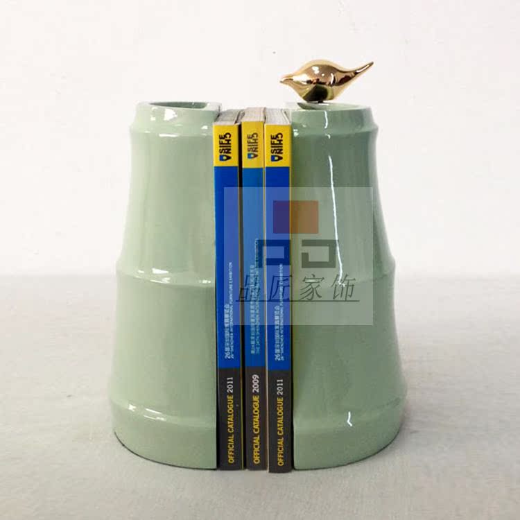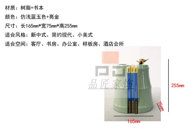 淺藍玉(不含書)新中式美式軟裝小鳥飾品酒店書房辦公室電視柜淺藍色書靠書檔擺件