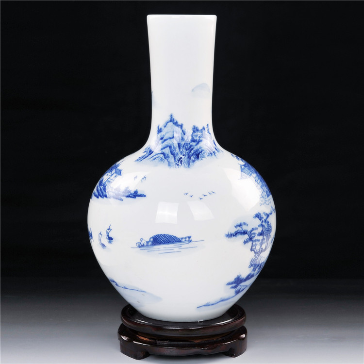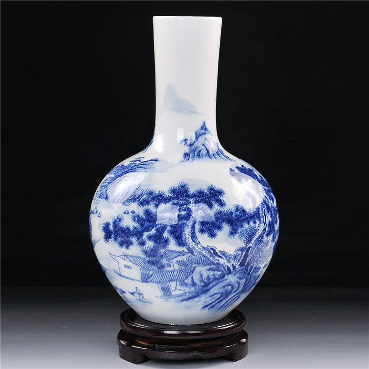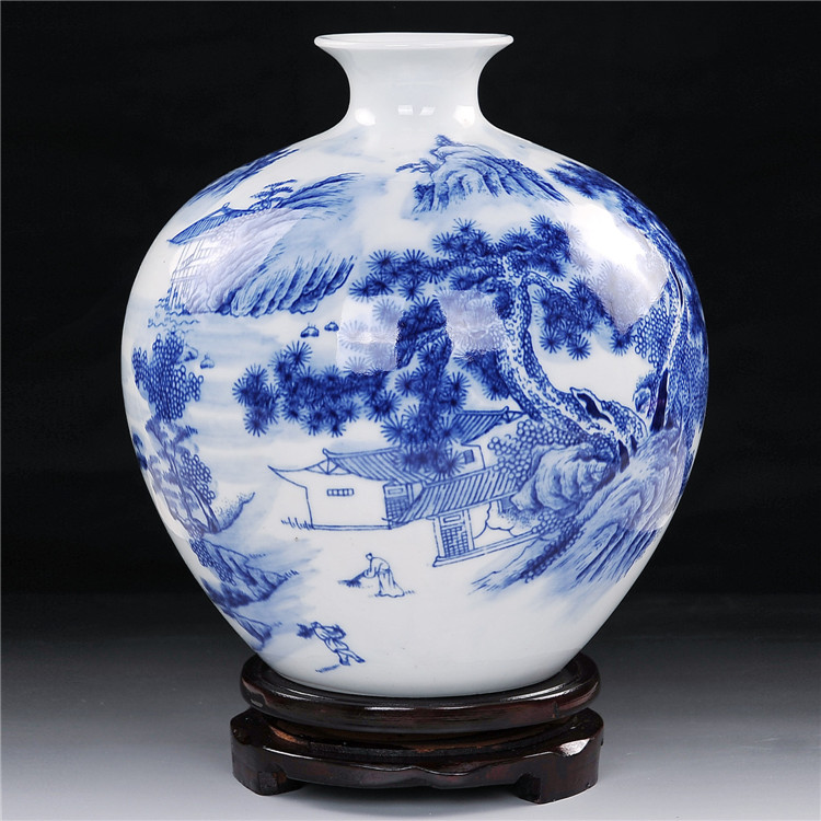 | 本公司大部分商品6一10天到貨。不接急單。急單的客戶請不要下單。感謝諒解與合作! 【品名】:山水畫仿古青花瓷 【產地】:中國·景德鎮 【材質】:陶瓷 【規格尺寸】: 賞 瓶 高: 33cm 最大直徑: 20cm 口徑: 10cm 底直徑:10cm 梅 瓶 高: 28cm 最大直徑: 19cm 口徑: 6cm底直徑:10cm 石 榴 高: 22cm 最大直徑: 21cm 口徑: 7cm底直徑:12cm 魚尾瓶高: 33cm 最大直徑: 17cm 口徑: 13cm 底直徑:11cm 燈籠瓶高: 28cm 最大直徑: 20cm 口徑: 12cm 底直徑:11cm 天球瓶高: 35cm 最大直徑: 20cm 口徑:7cm 底直徑:11cm 【物品清單】:花瓶一件送底座 【包裝】:防破損包裝