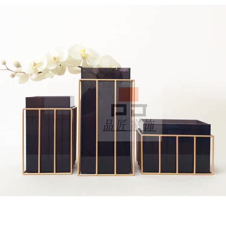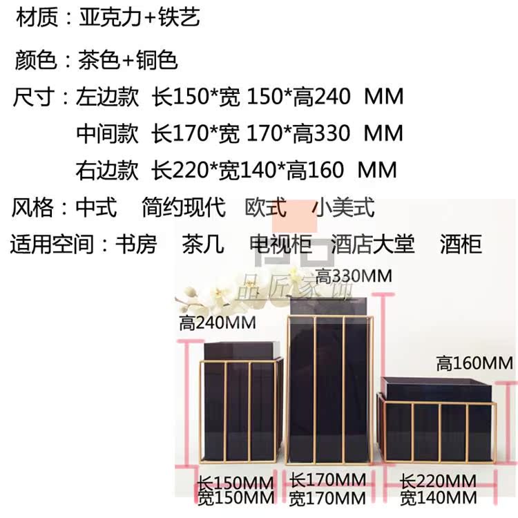 茶色右邊款現代中式軟裝高檔家庭辦公室桌面酒店花插電視柜鐵藝花器擺件飾品