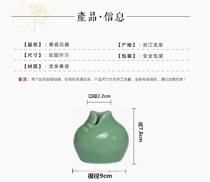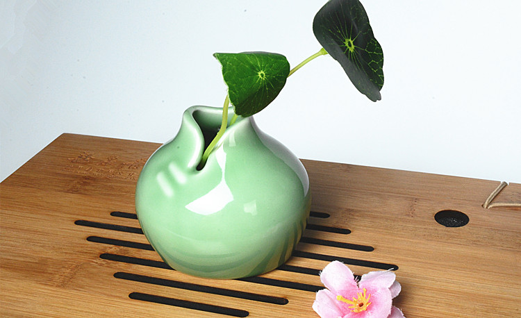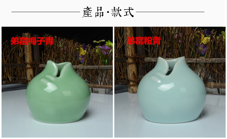 弟窯梅子青龍泉淘青瓷 臺面青瓷花瓶家居裝飾配件花插 客廳陶瓷水培迷你花器
