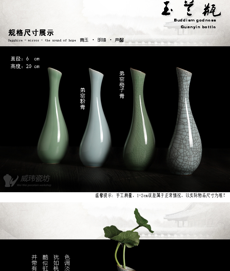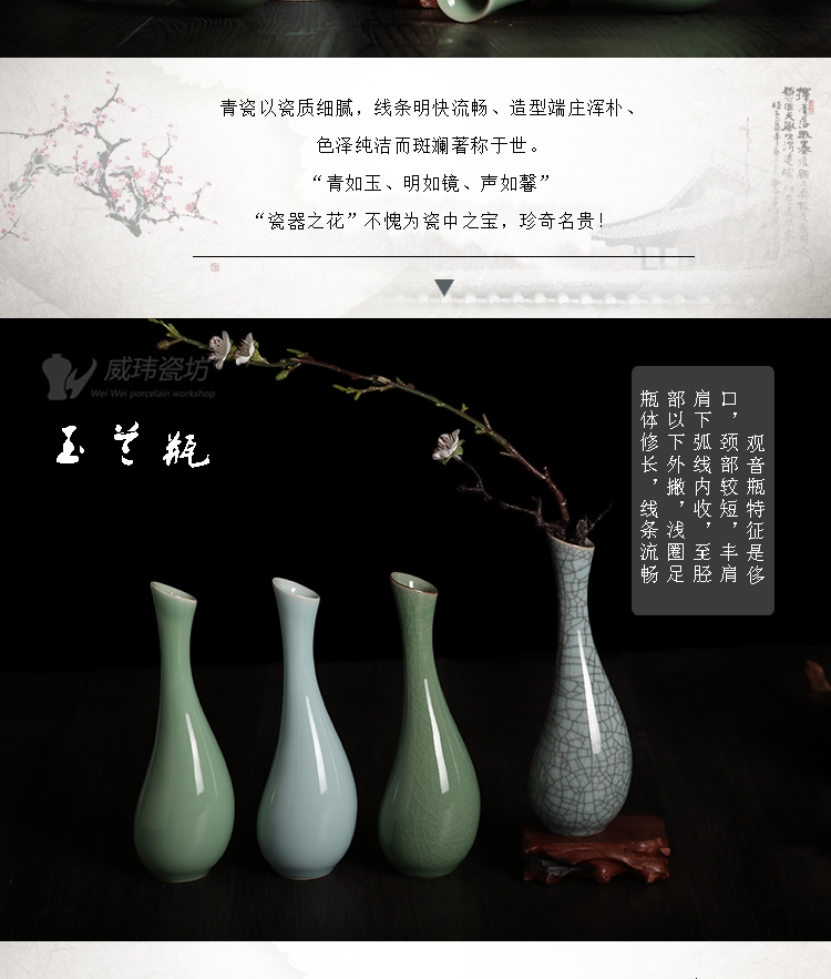 哥窯梅子青龍泉威瑋青瓷 觀音玉凈瓶仿古瓷花瓶 復古家飾臺面擺件陶瓷器