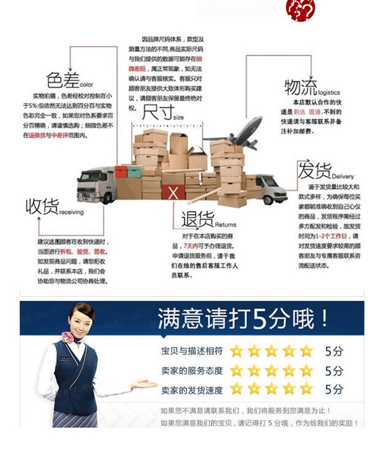 本公司大部分商品6一10天到貨。不接急單。急單的客戶請不要下單。感謝諒解與合作!