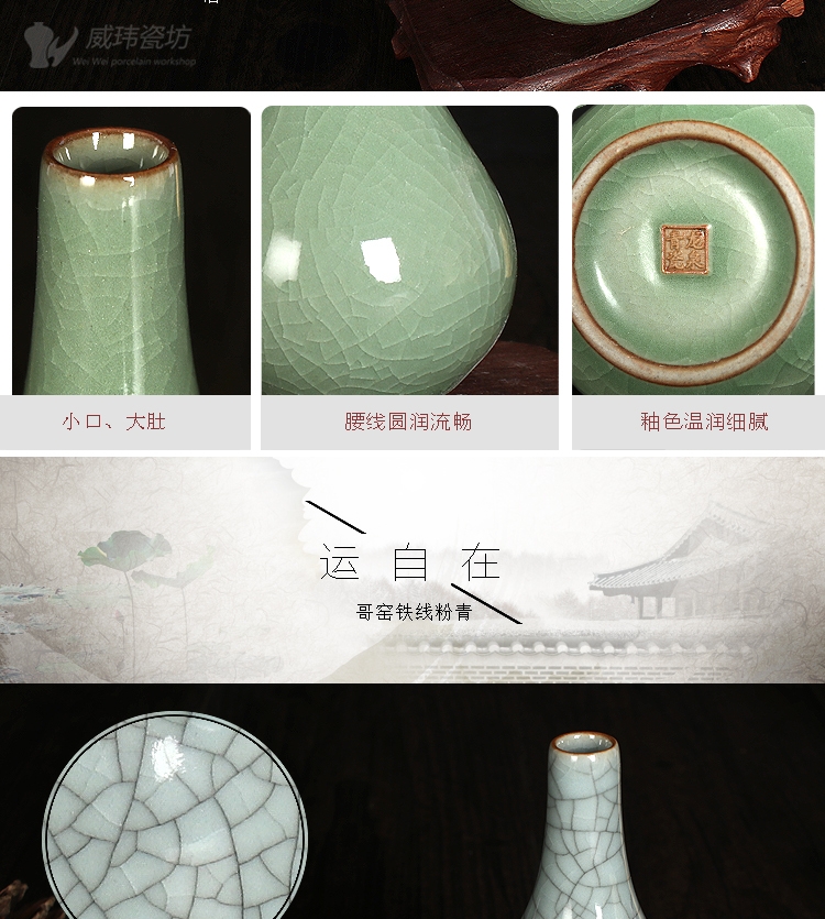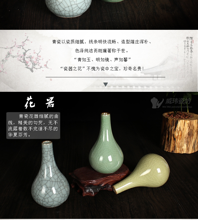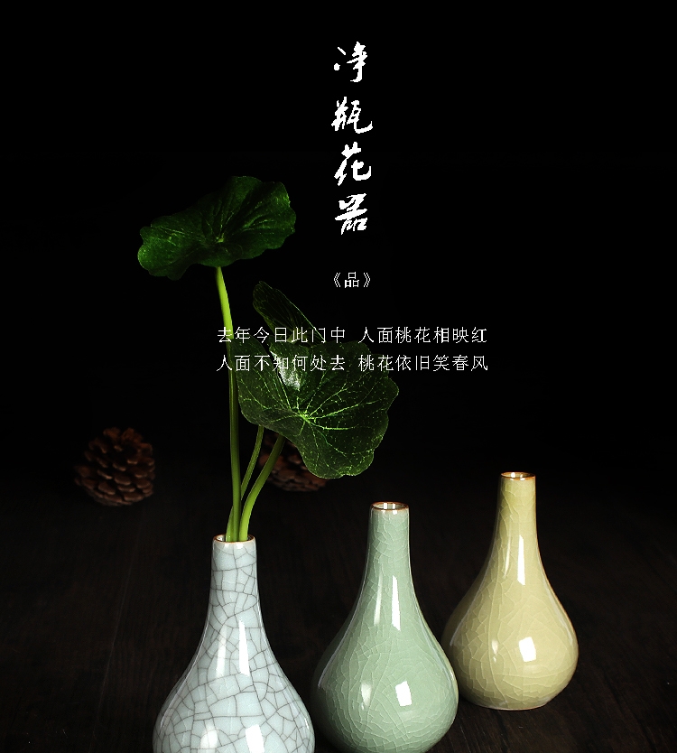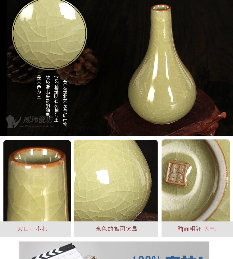 哥黃龍泉威瑋青瓷 凈瓶迷你花器復古家飾臺面小花瓶擺件陶瓷器