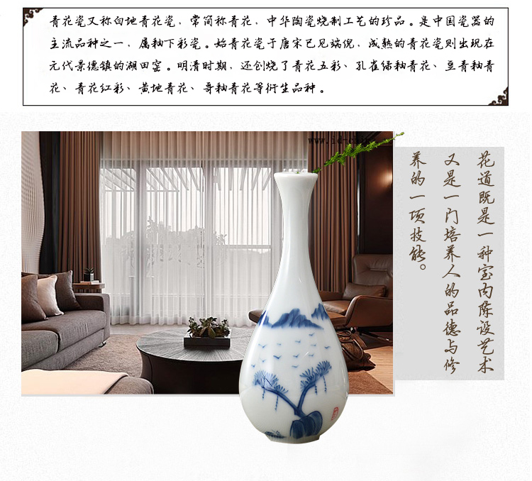 美人瓶景德鎮手繪山水青花瓷 陶瓷迷你小花瓶酒柜裝飾品擺件 茶道小花器