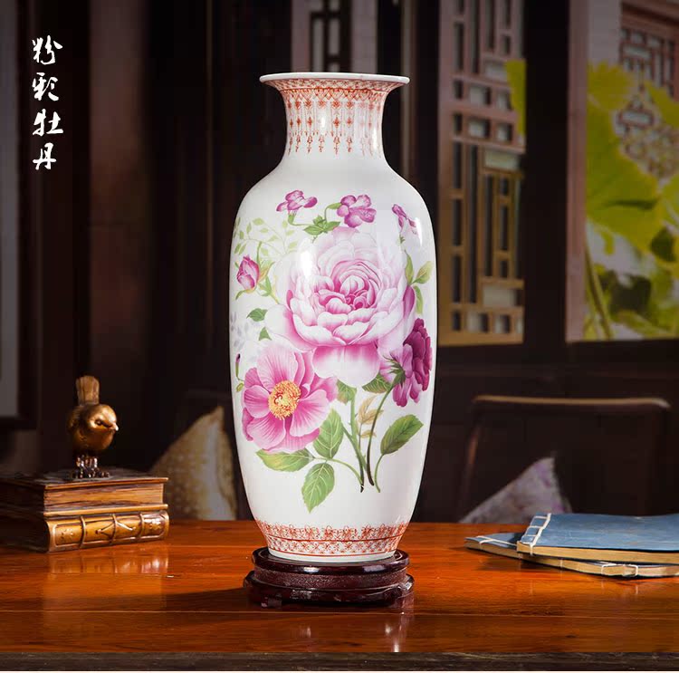 紅色花開富貴冬瓜瓶景德鎮陶瓷花瓶 粉彩 瓷器擺件居家客廳花插裝飾工藝品電視柜擺設