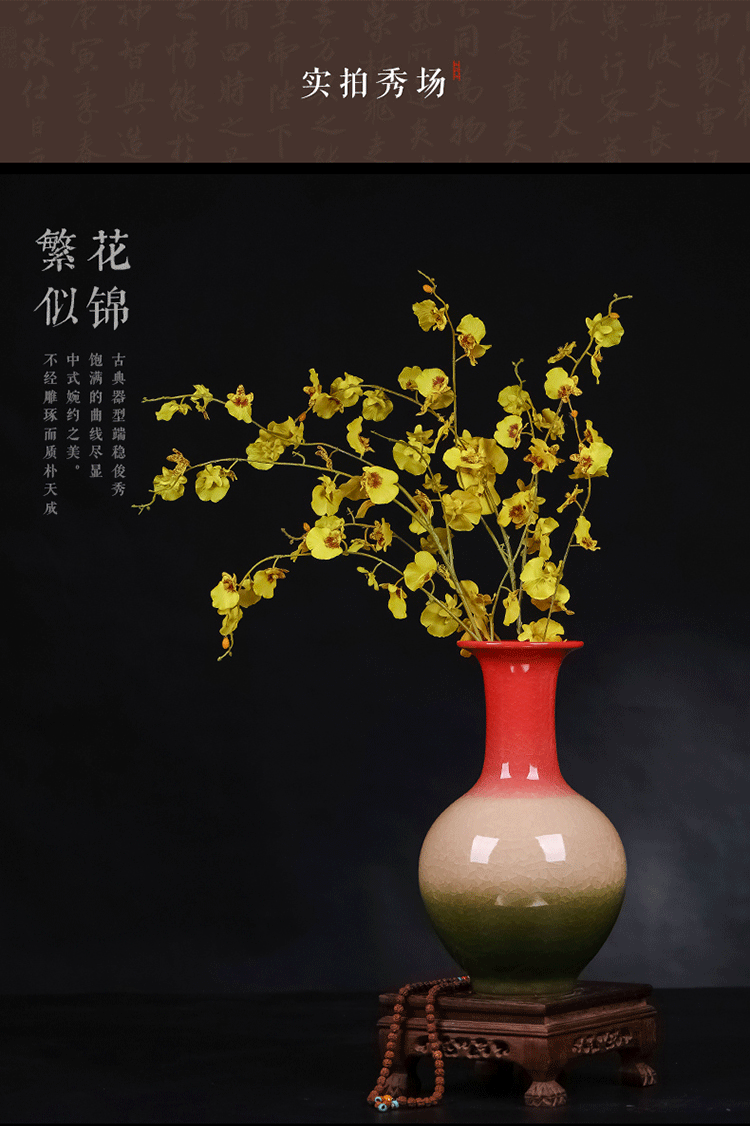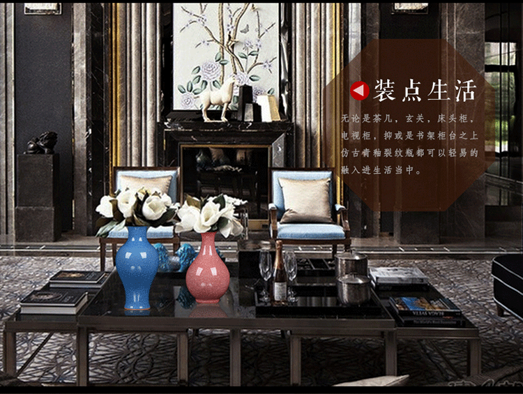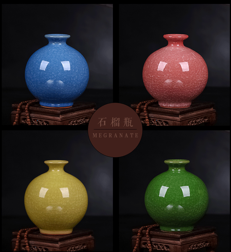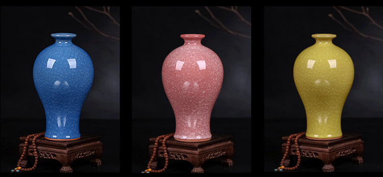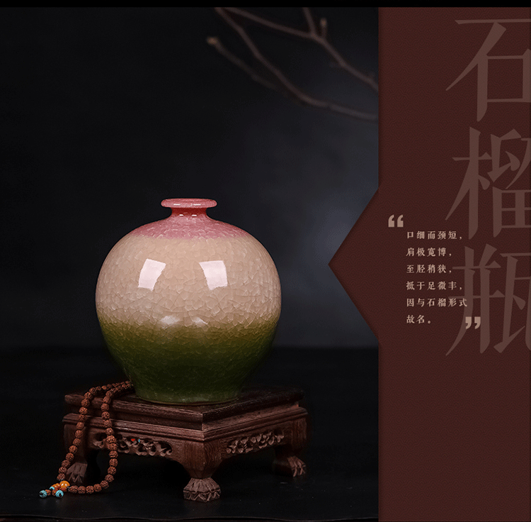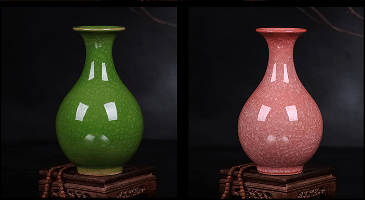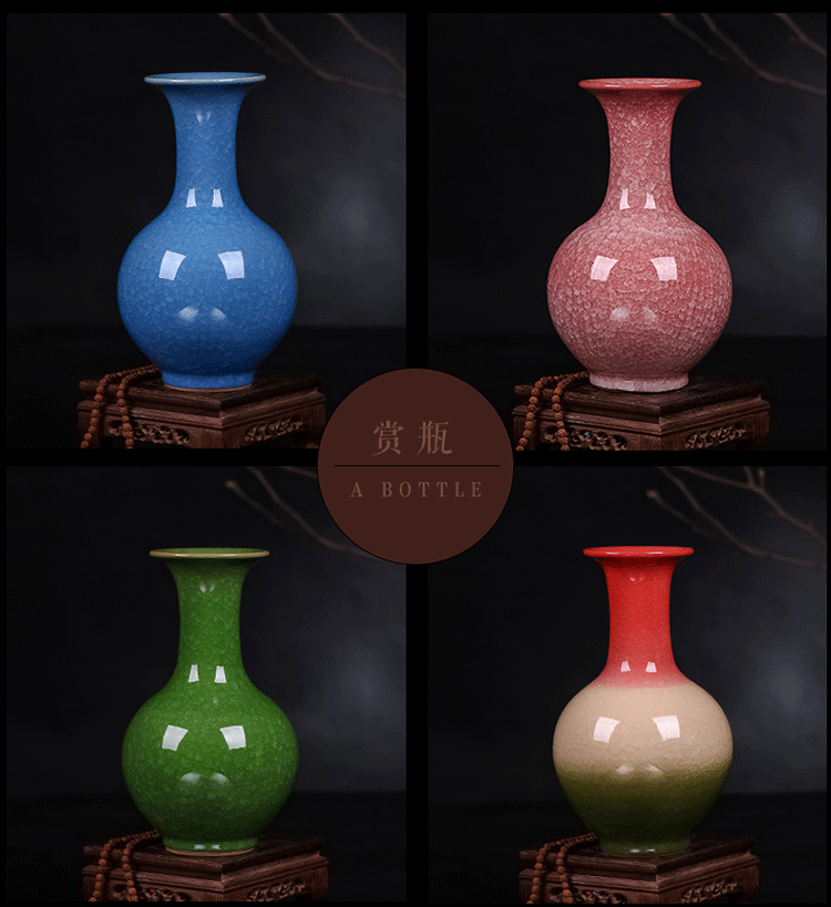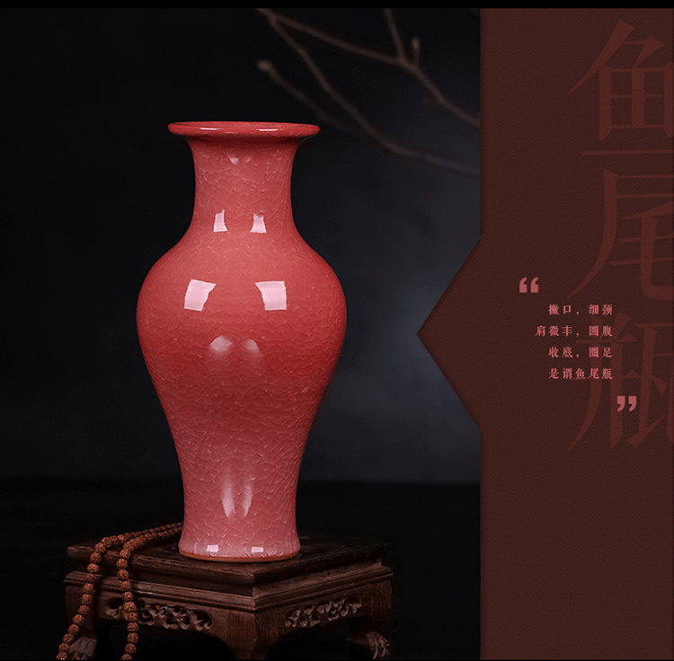 紅色冰裂釉玉壺春瓶景德鎮陶瓷器冰裂釉花瓶 客廳擺件 電視柜書房裝飾工藝品喬遷禮品