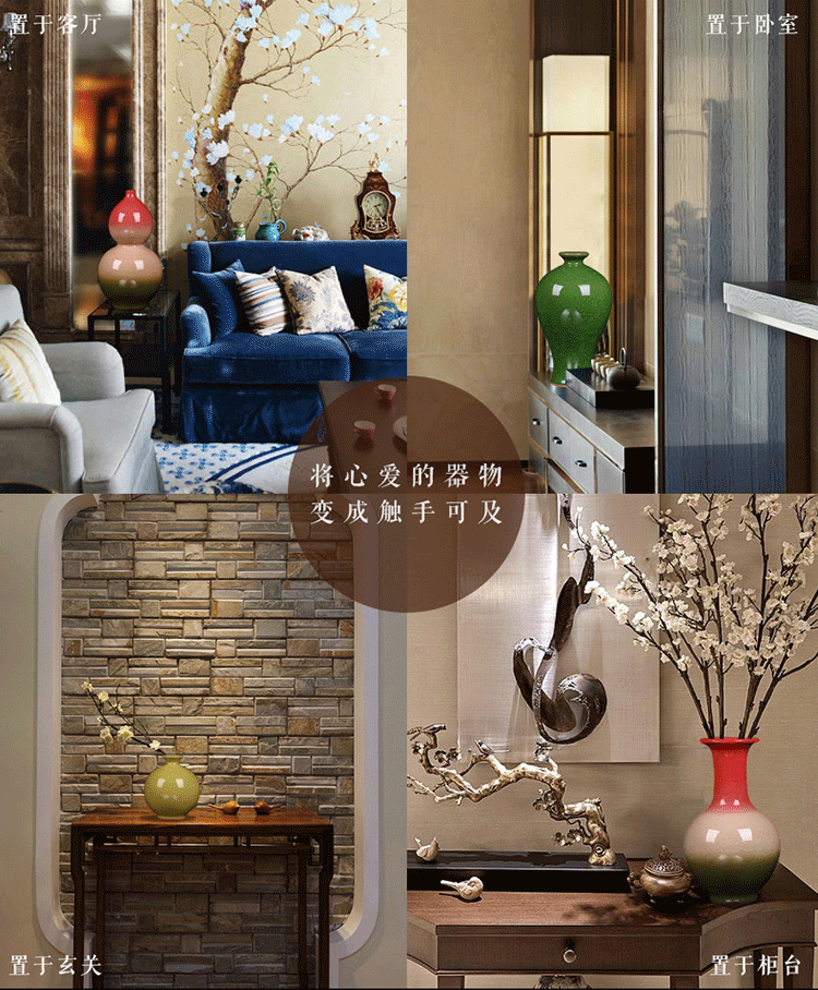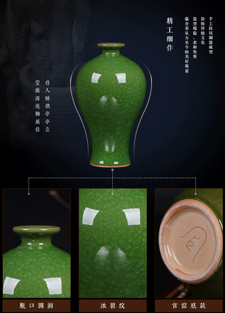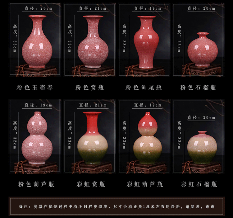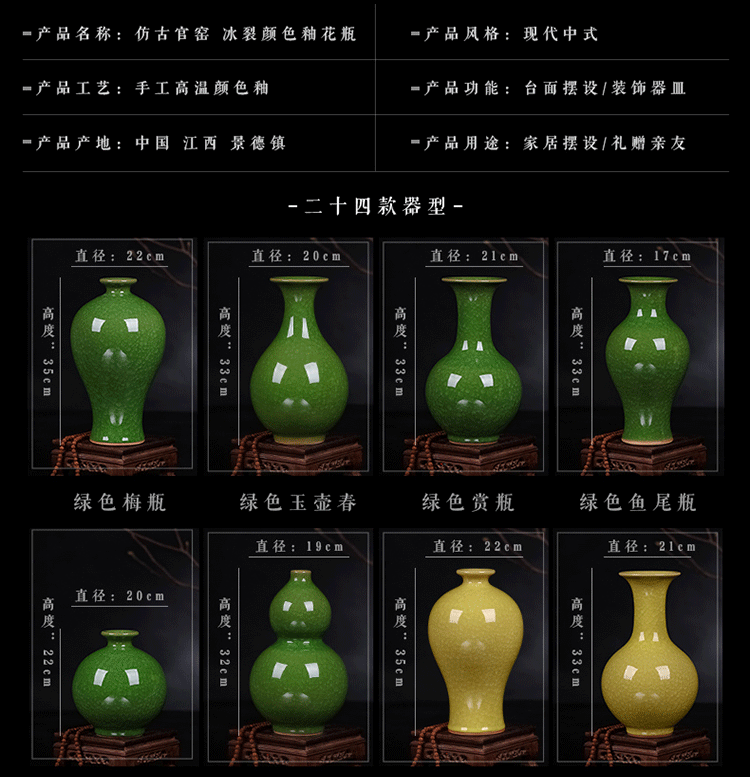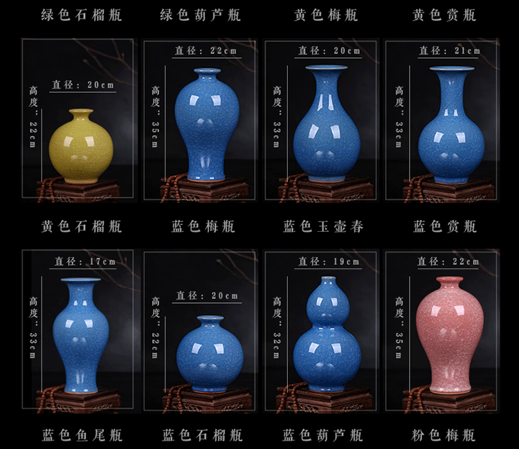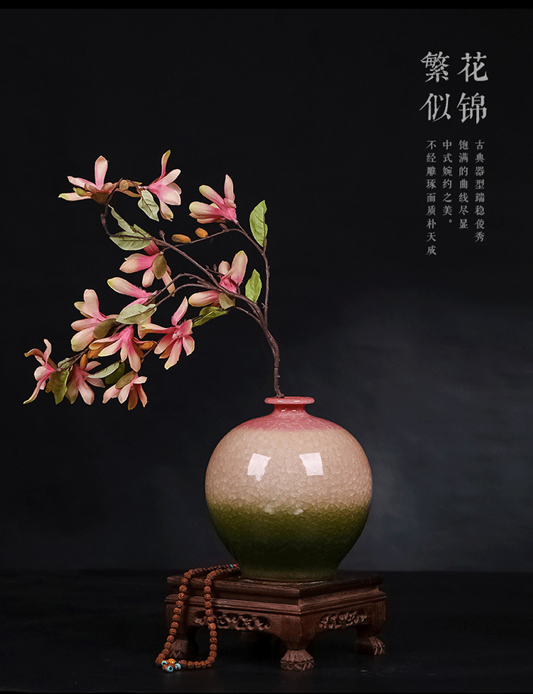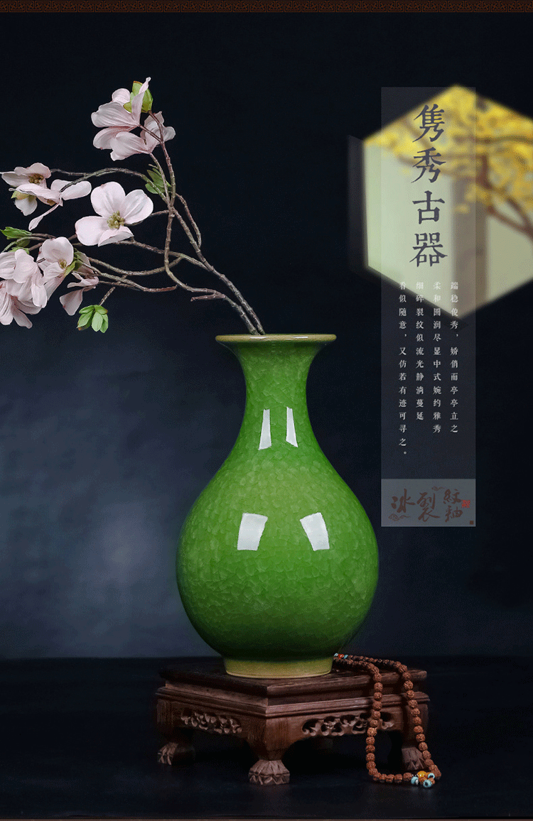 紅色冰裂釉玉壺春瓶景德鎮陶瓷器冰裂釉花瓶 客廳擺件 電視柜書房裝飾工藝品喬遷禮品