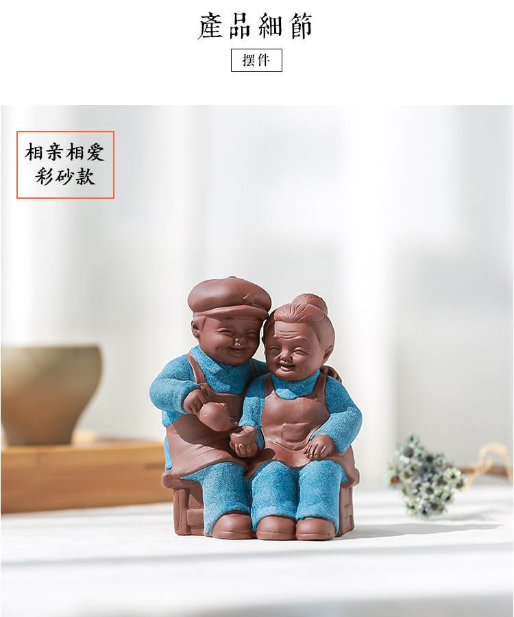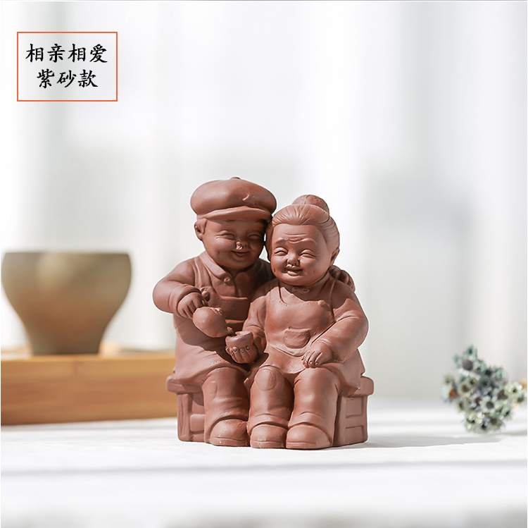 相親相愛(紫砂款)創意情侶老人物家居飾品擺件陶瓷工藝品客廳裝飾結婚紀念生日禮物