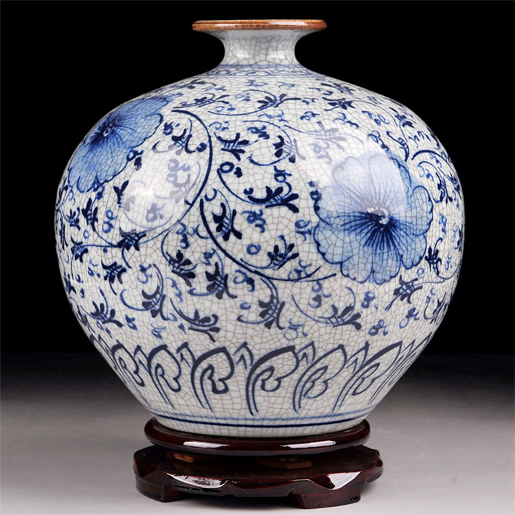 青花瓷石榴瓶(大號)JDZ景德鎮陶瓷花瓶仿古手繪青花瓷高檔博古架臺面裝飾擺件禮品
