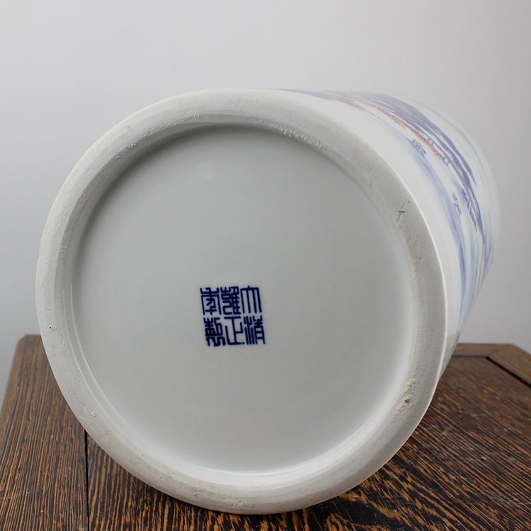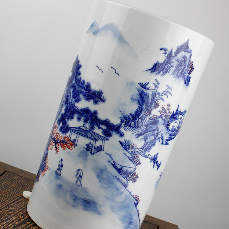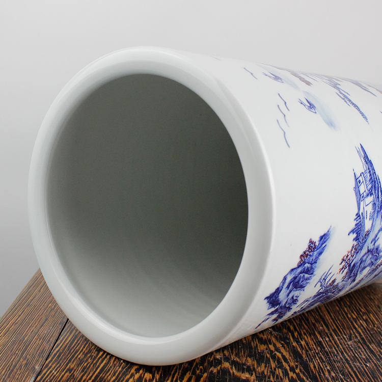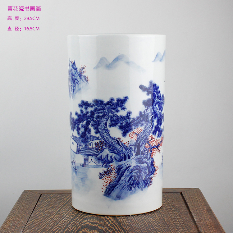 青花瓷山水畫景德鎮陶瓷器 青花瓷山水畫花瓶花插書畫筒 現代居家裝飾品擺件設