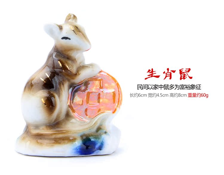 金鼠揚眉【暫缺貨】陶瓷十二生肖擺件全套鼠牛虎兔龍蛇馬羊猴雞狗豬12屬相風水工藝瓶