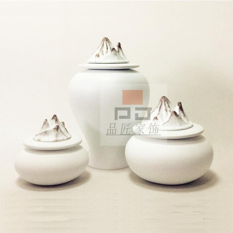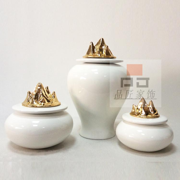 金色左中式現代古典軟裝家具辦公桌面電視柜玄關白色金色雕塑山罐子擺件