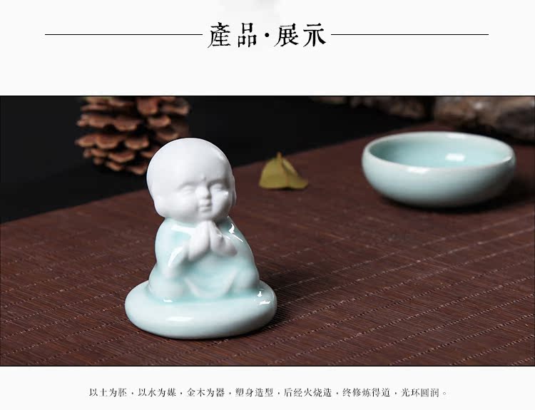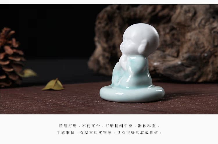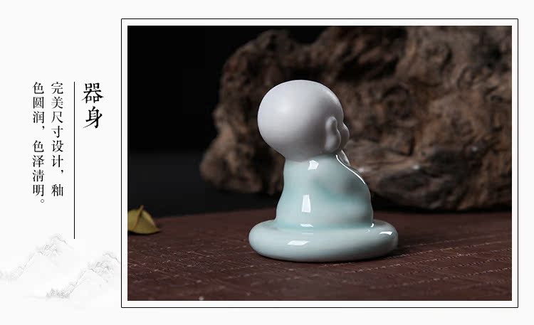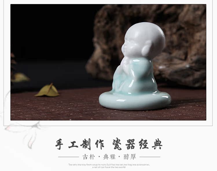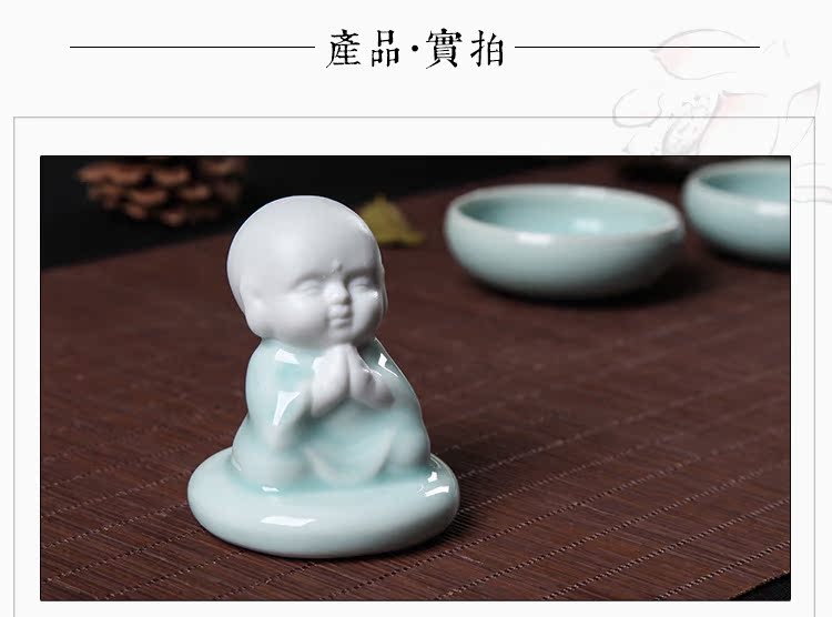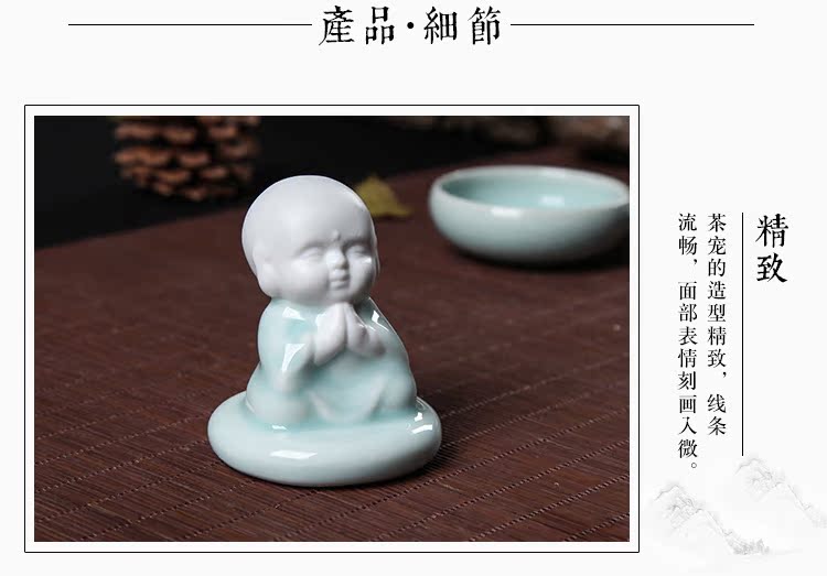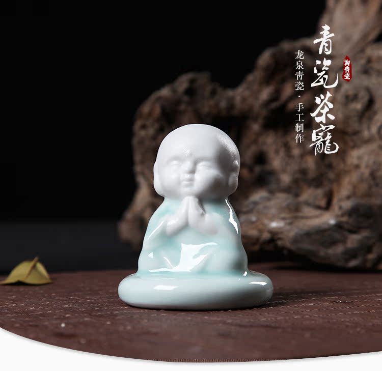 和尚茶寵龍泉淘青瓷可愛童趣小沙彌和尚茶玩哥窯開片陶瓷茶寵擺件特價促銷