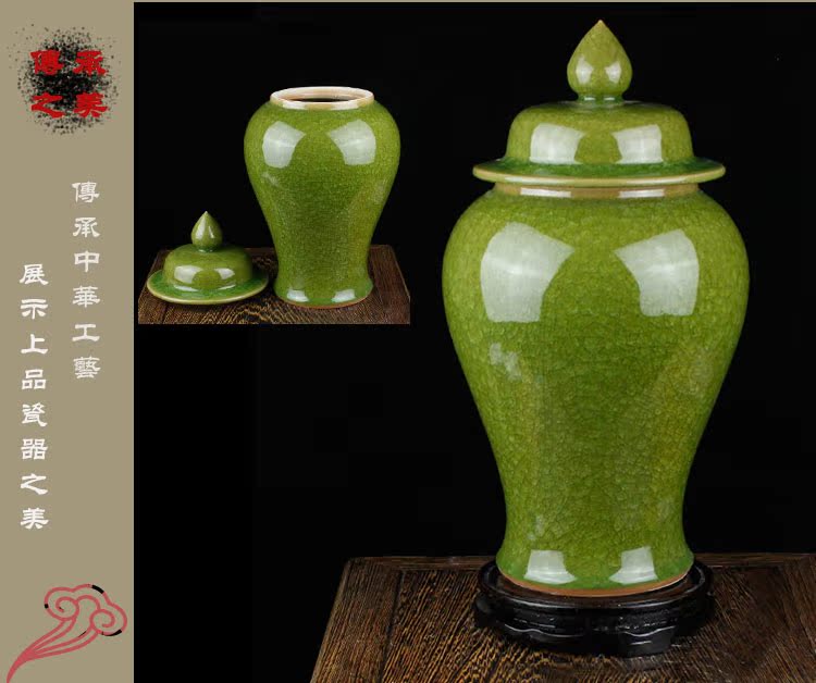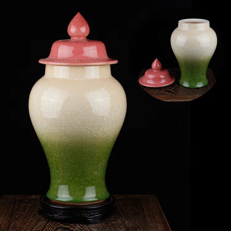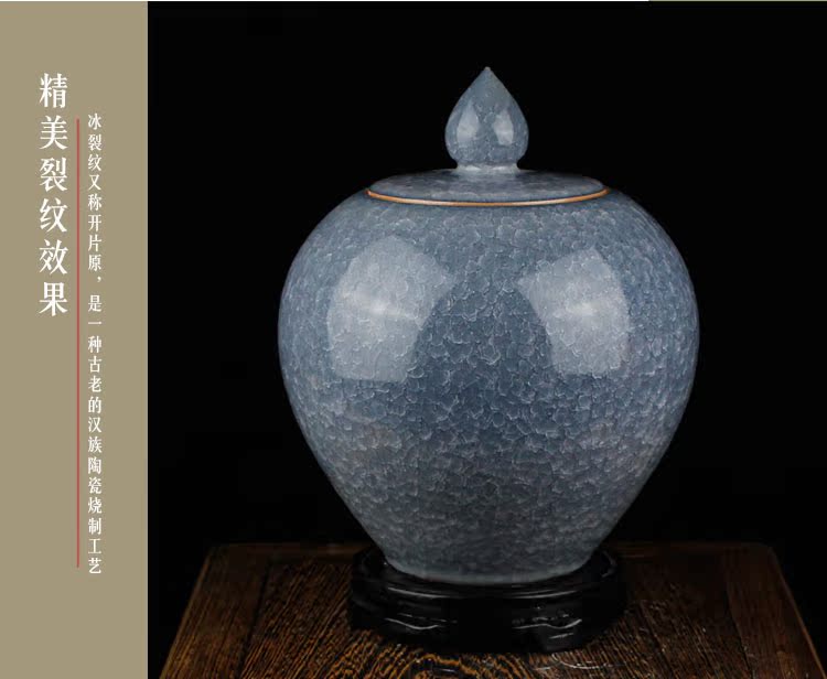 灰色景德鎮陶瓷品冰片蔣軍罐蘋果壇子儲物瓷壇居家裝飾工藝品現代擺件