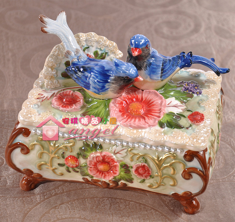 【規格】:16.2長*12寬*13.3高厘米9928 89【品名】:桃花扇系列喜鵲與杜鵑花珠寶盒