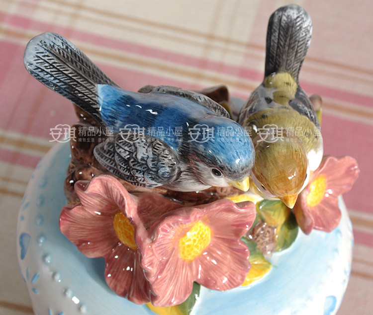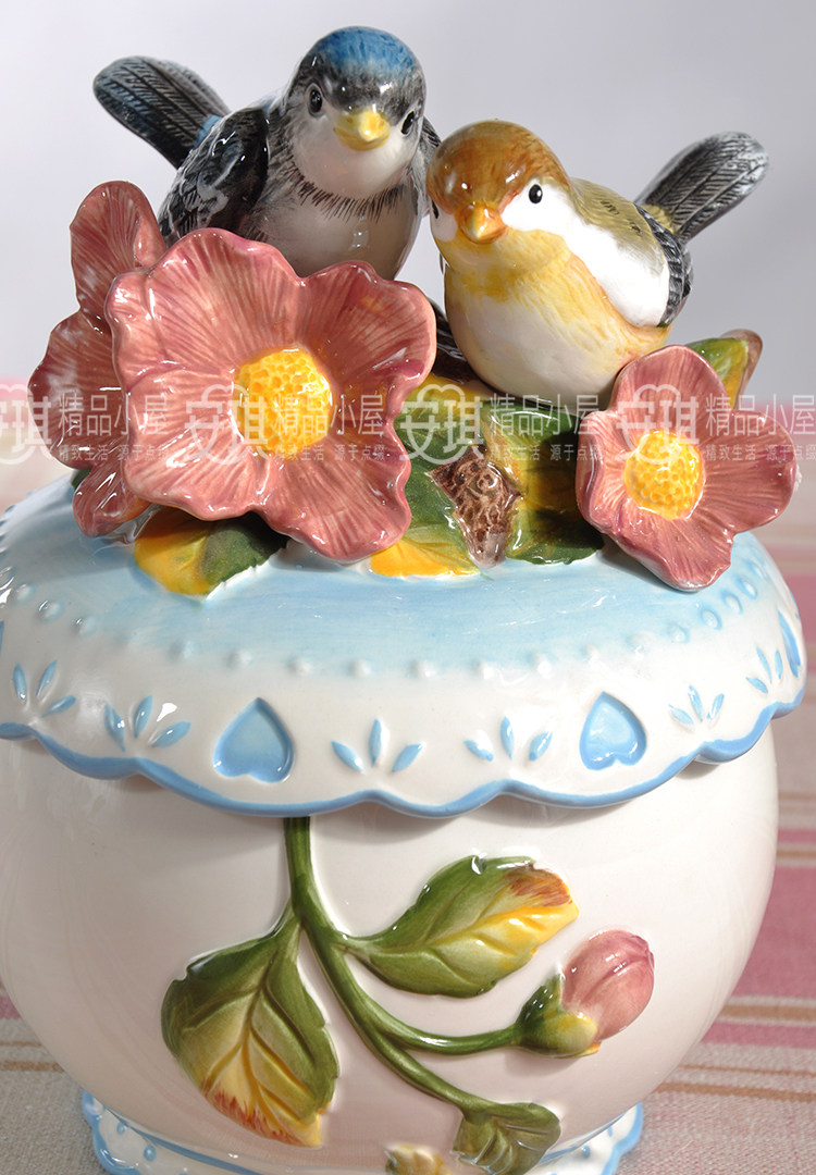【介紹】:釉下彩繪陶瓷雕刻烤制而成。風格獨特,清晰自然,手工花及兩只逼真的紅鳥非常漂亮,非常適用現代時尚的家居,底部有品牌LOGO標,原裝禮盒,送結婚的最佳禮品.