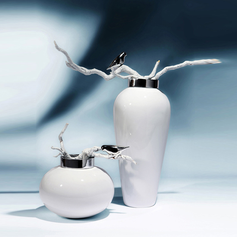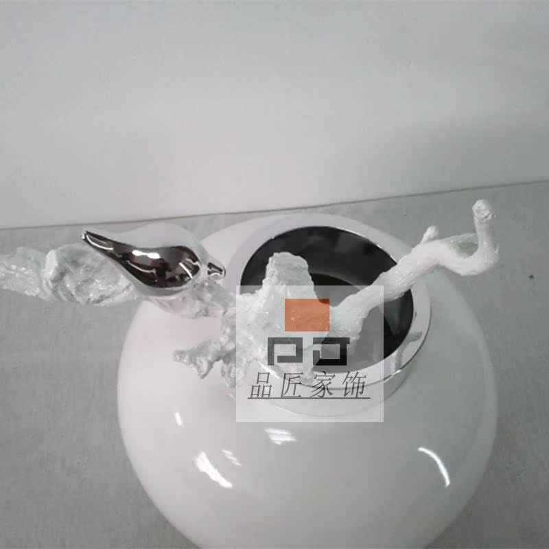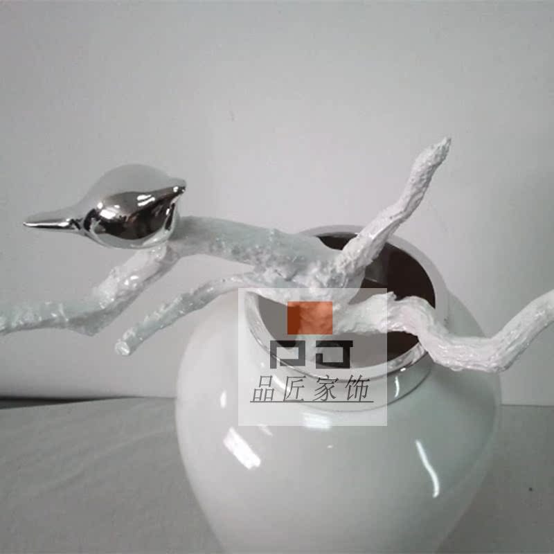 左邊歐式現代辦公室酒店會所別墅客廳電視家具飾品禮品白色花瓶大擺件