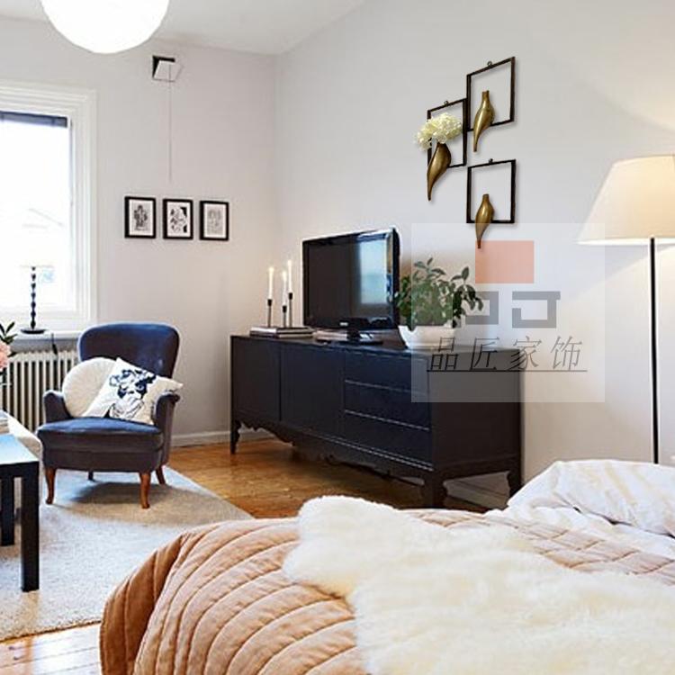 右邊款(不含花)現代軟裝家具辦公室酒店會所背景墻掛飾走廊壁飾鐵藝花插擺件