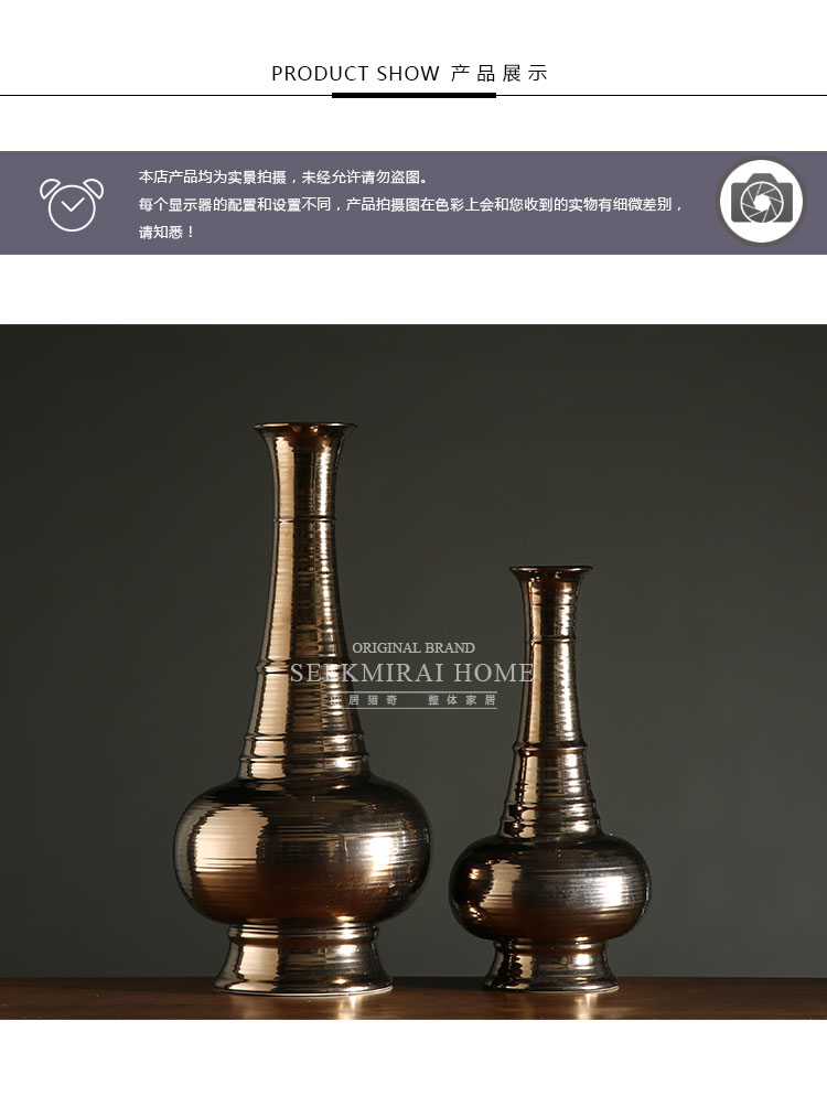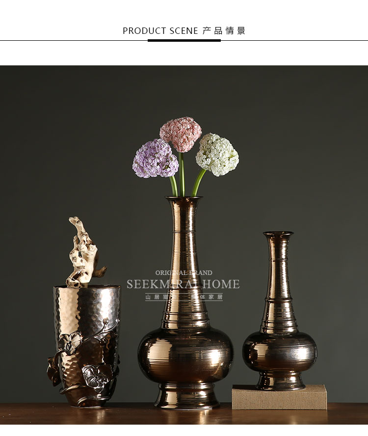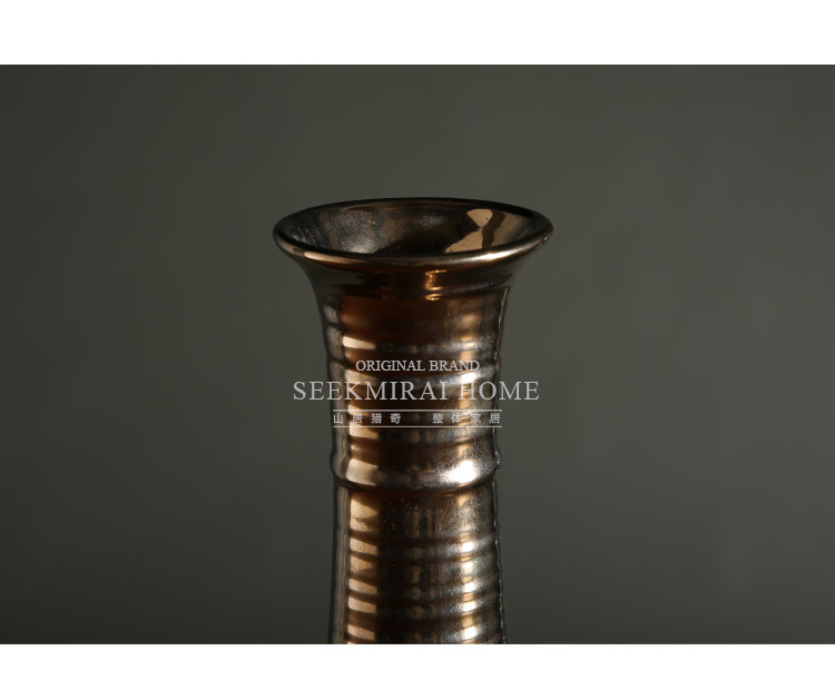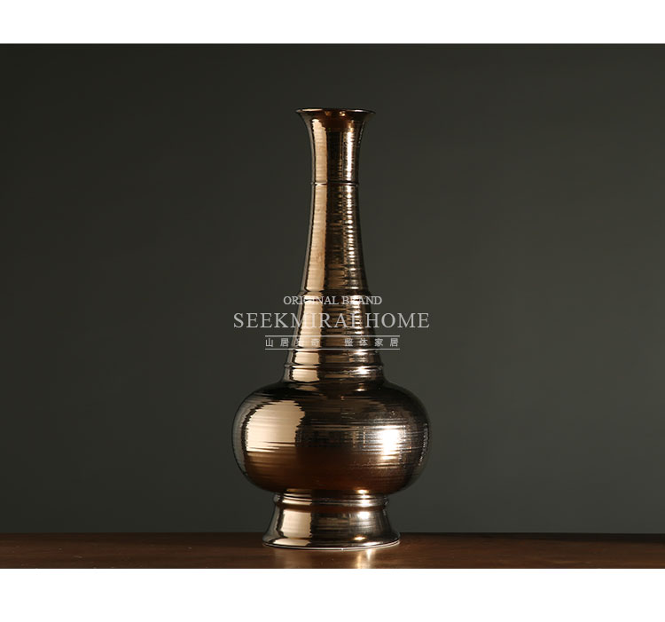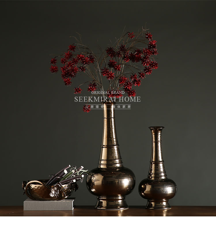 古銅一套客廳酒柜裝飾藝術插花花瓶 陶瓷花器桌面擺件 古銅色長頸小口花瓶